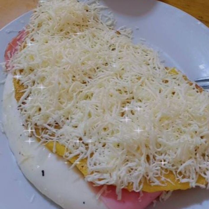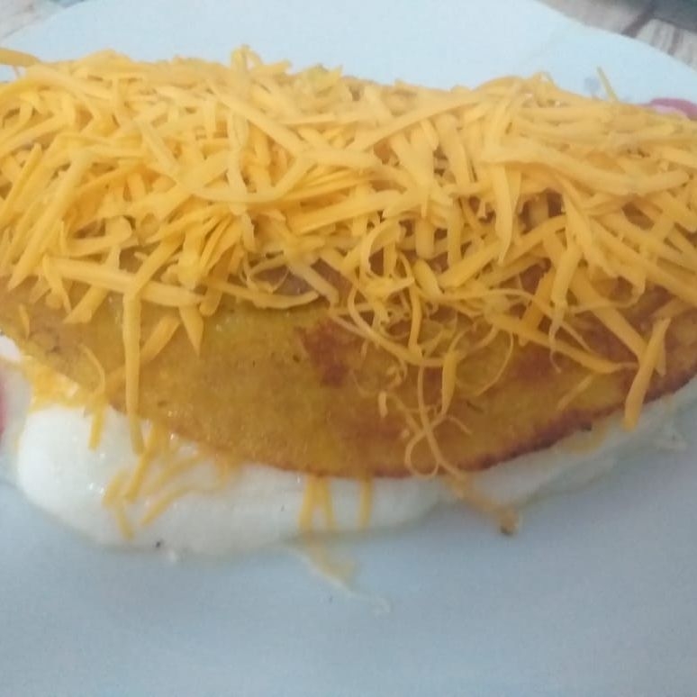 Cachapa con queso de mano, jamón y queso rallado.