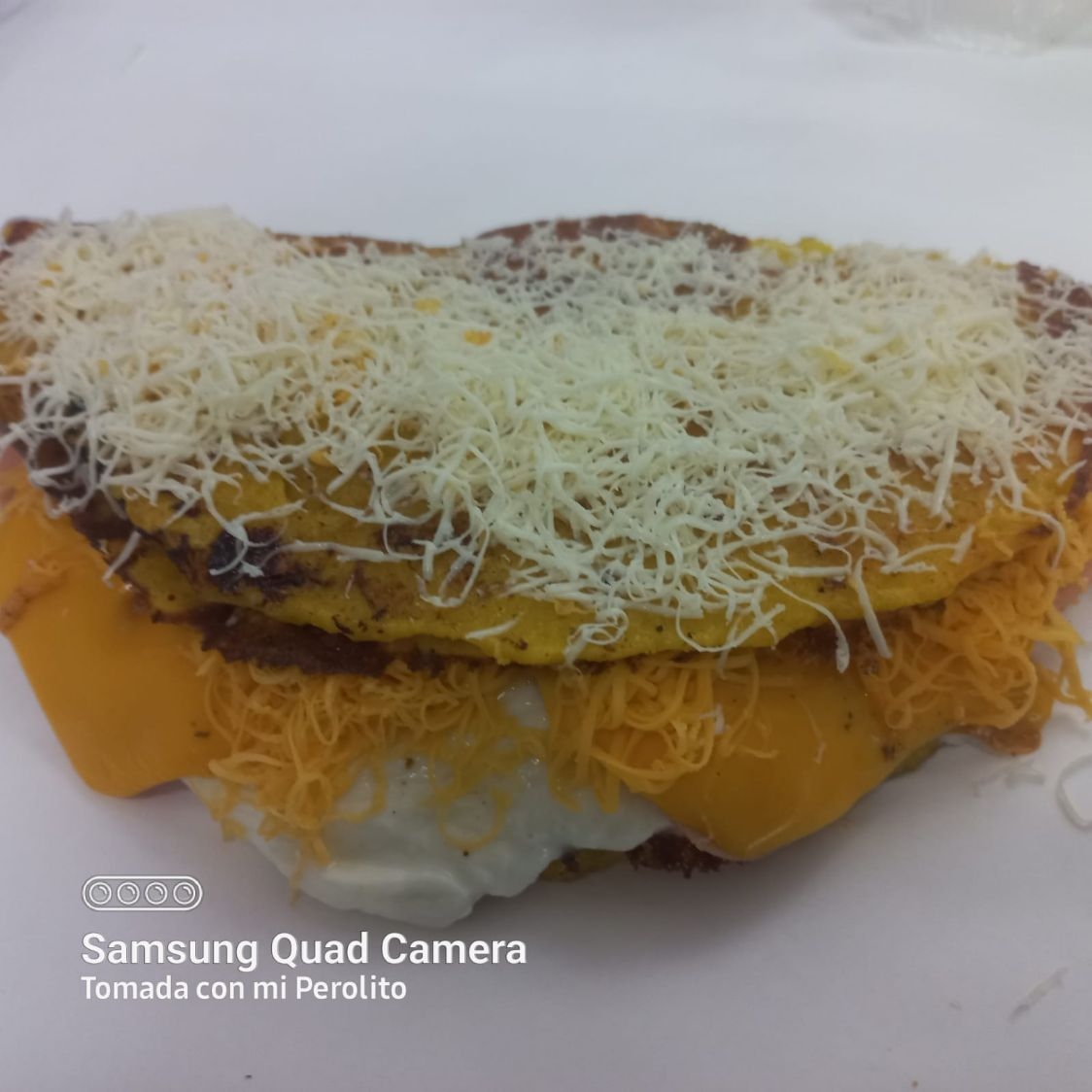 Arepa de maíz blanco, con huevos revueltos.