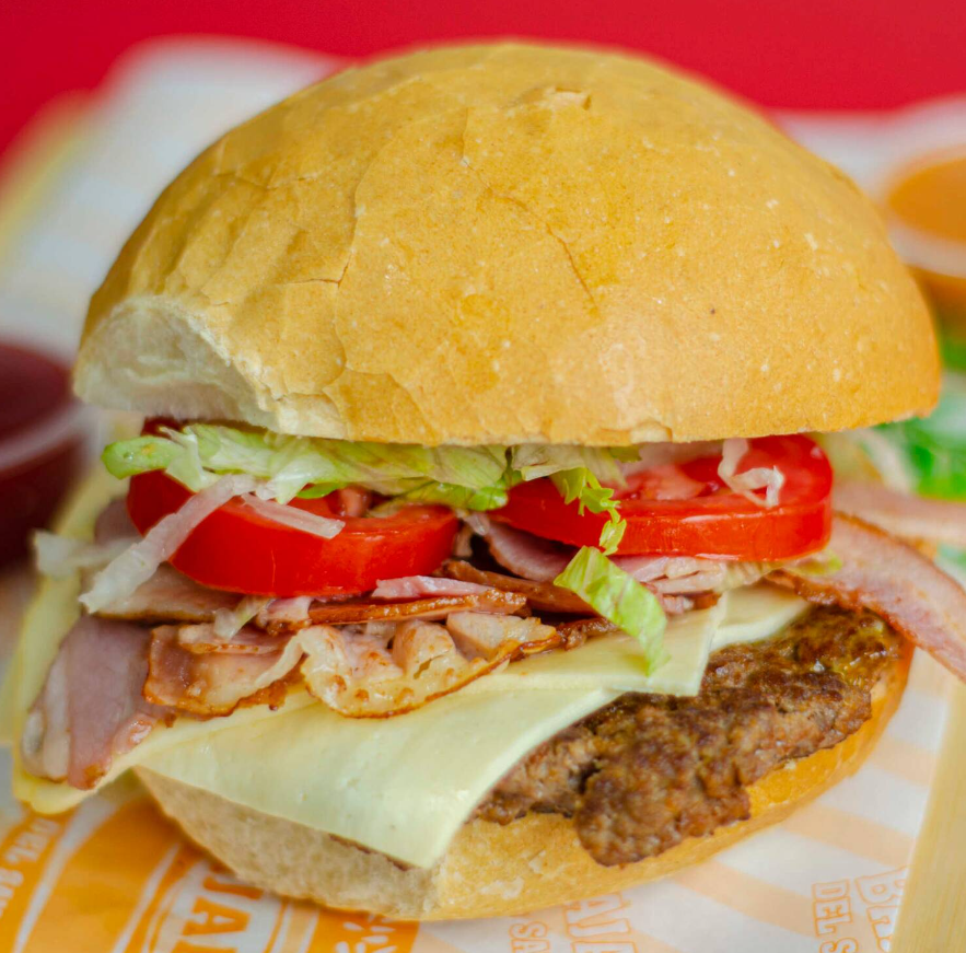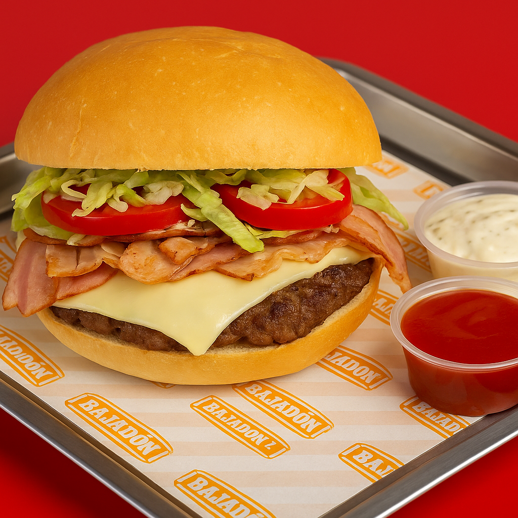 Sándwich de Hamburguesa con 2 Jamones y 4 Tocinos