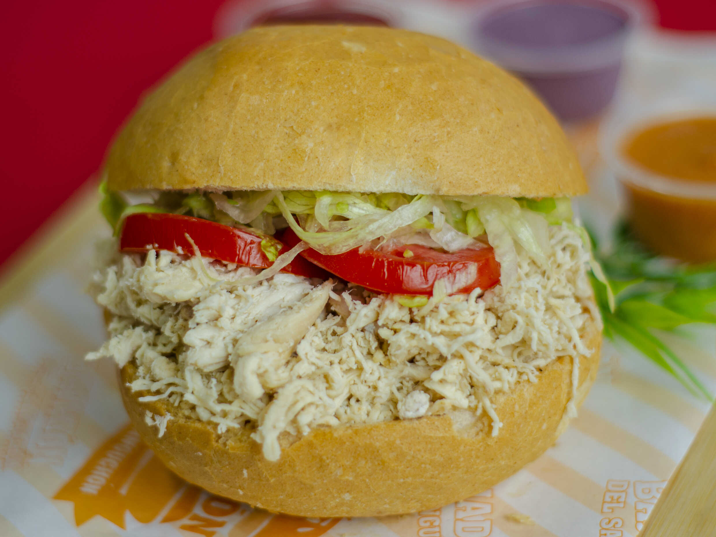 Pan, pollo deshilachado, 2 lomitos ahumados y 4 salames.