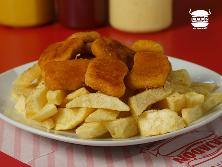 Pan, 6 nuggets de pollo y 4 tocinos.