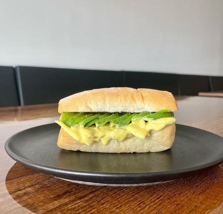 Filete de pollo en trozos con mayomostaza, un toque de ajo y palta en pan ciabatta.