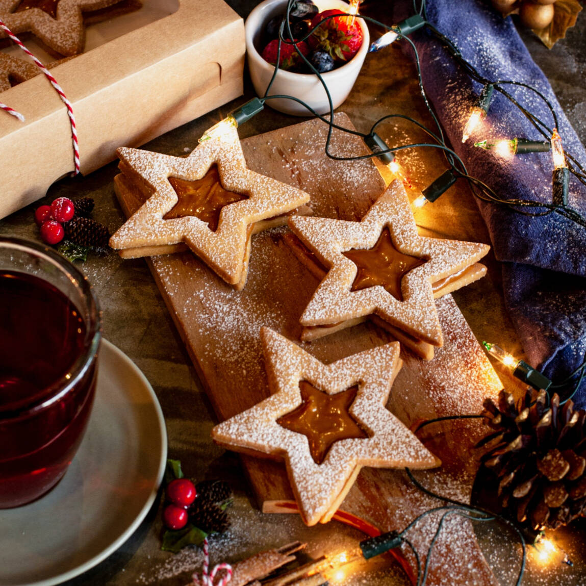 Pie de pecanas con base de harina integral, pecanas y almíbar.