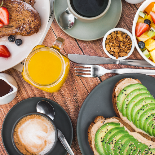 Elige tu desayuno favorito del cedro con un jugo de tu preferencia