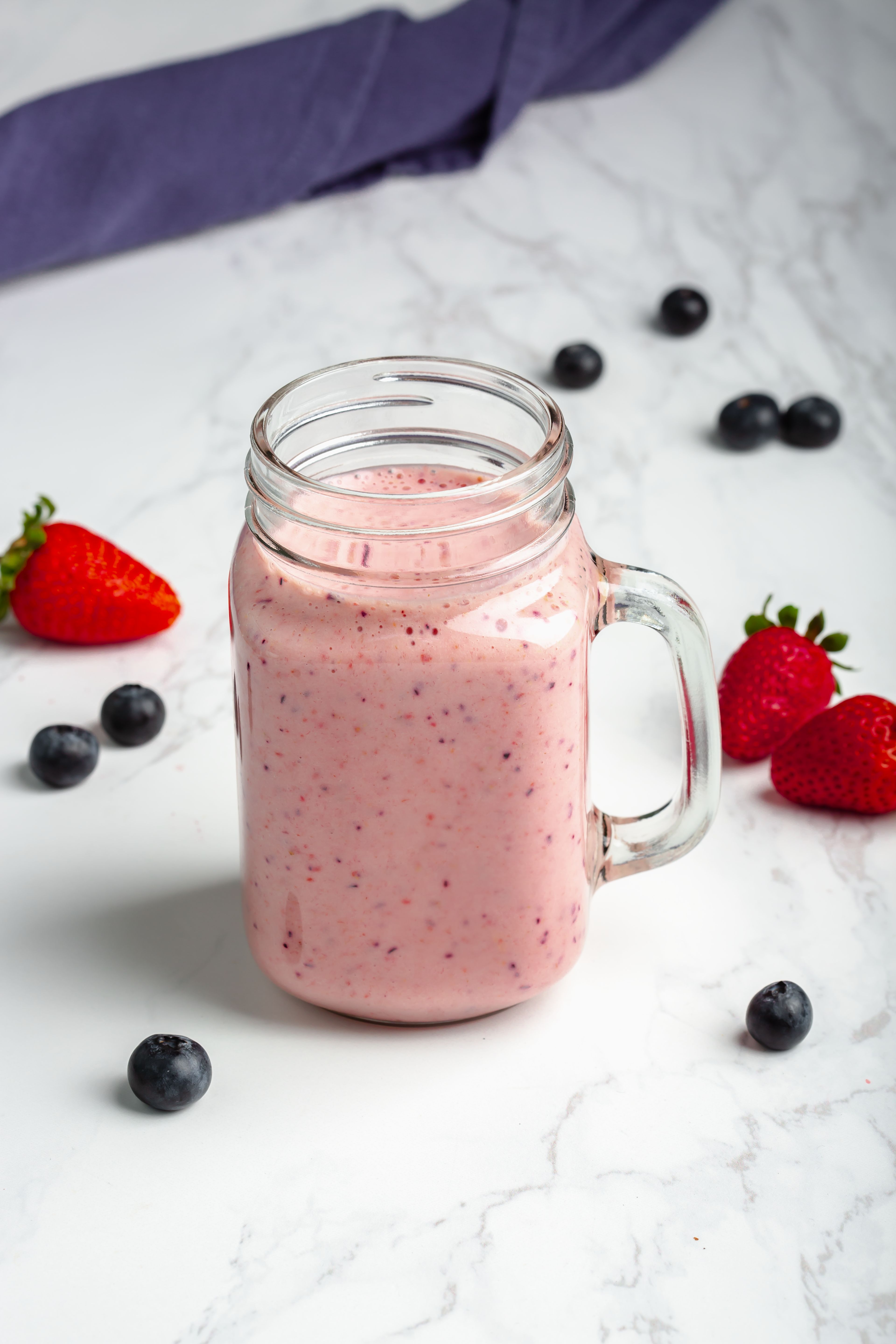 Smoothie de plátano, fresas, arándanos y yogurt natural 16 oz.