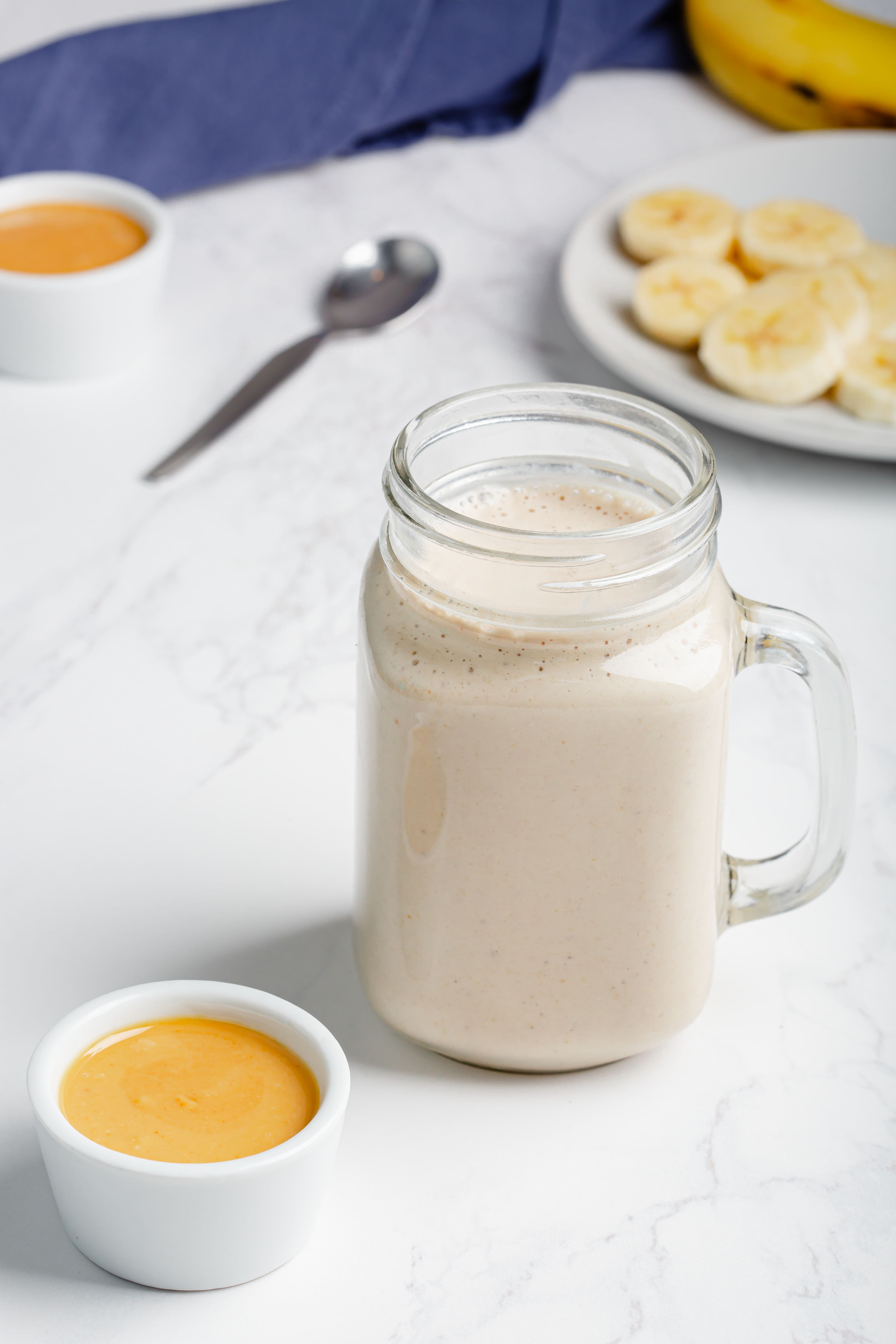 Smoothie de mantequilla de maní, plátano, leche y yogurt natural 16 oz.