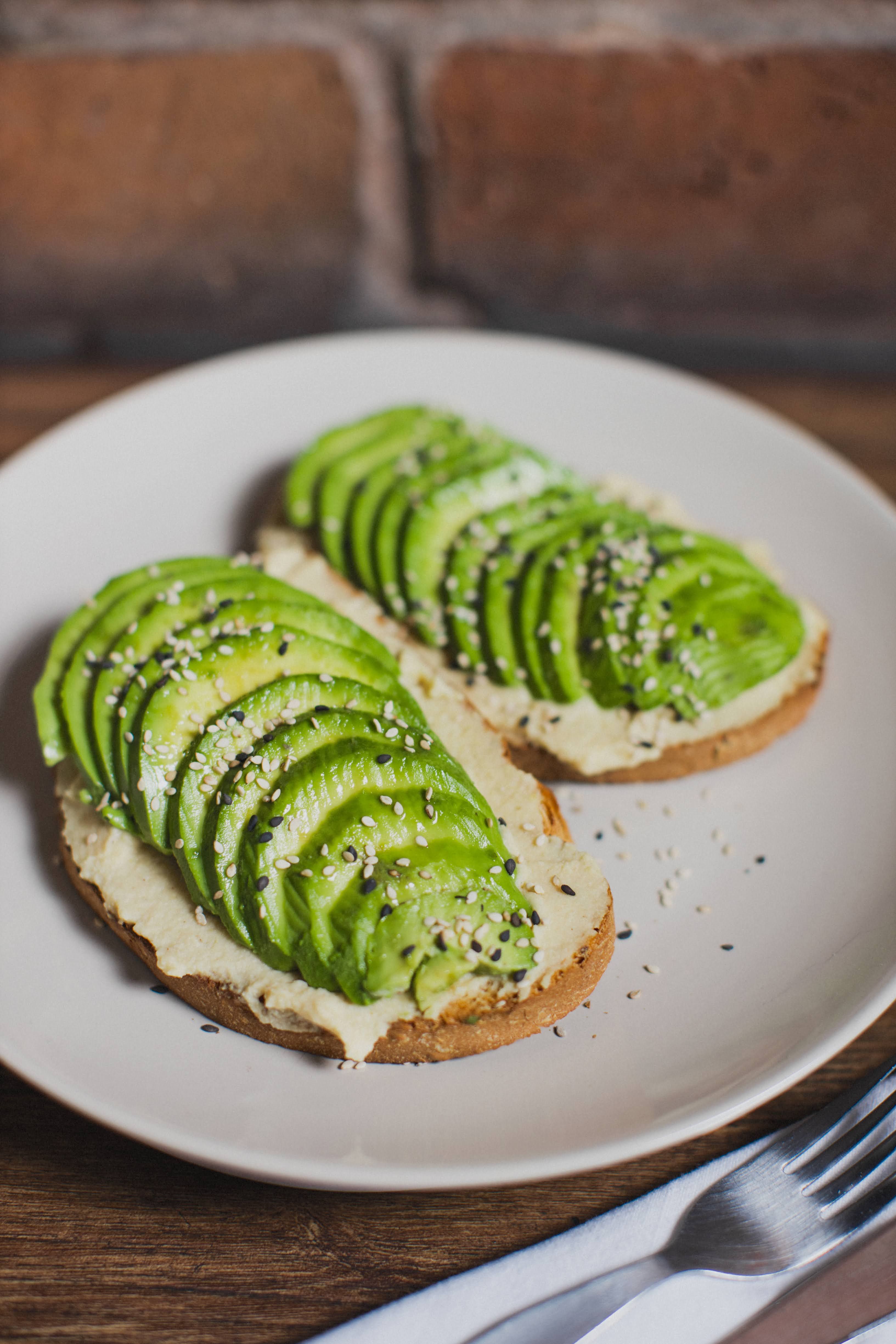 Dos tostones en pan multicereal con hummus, palta y ajonjolí