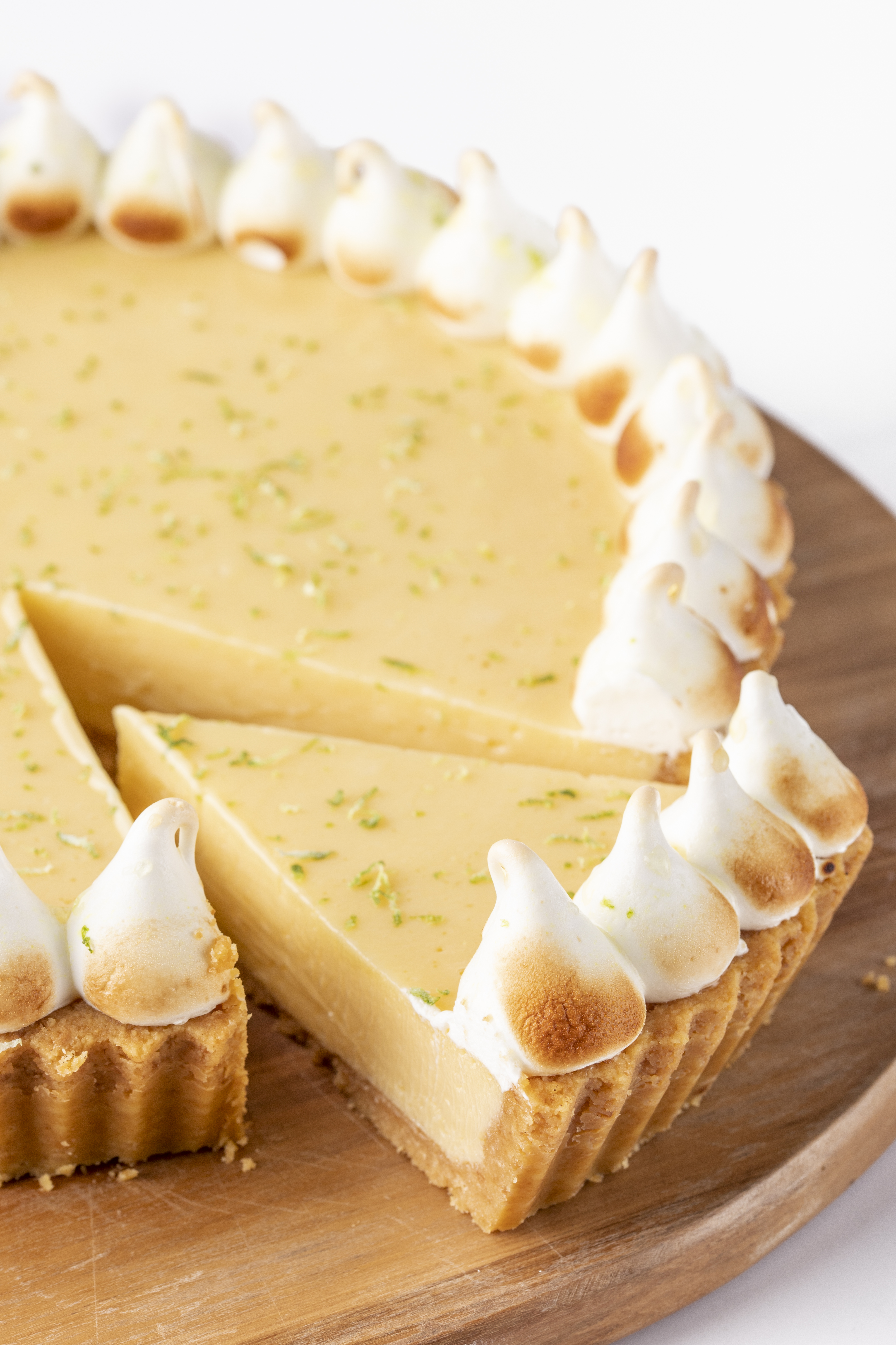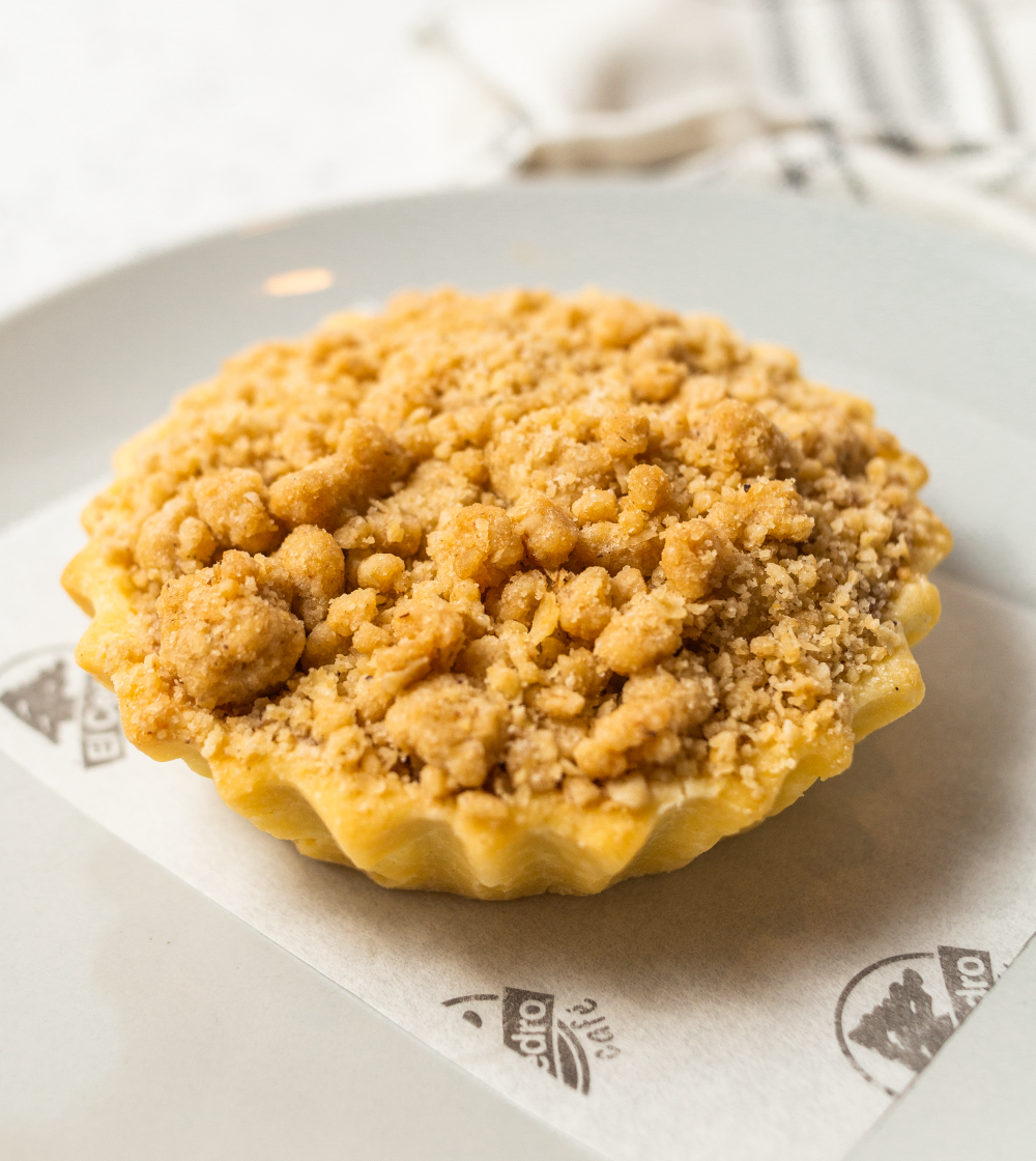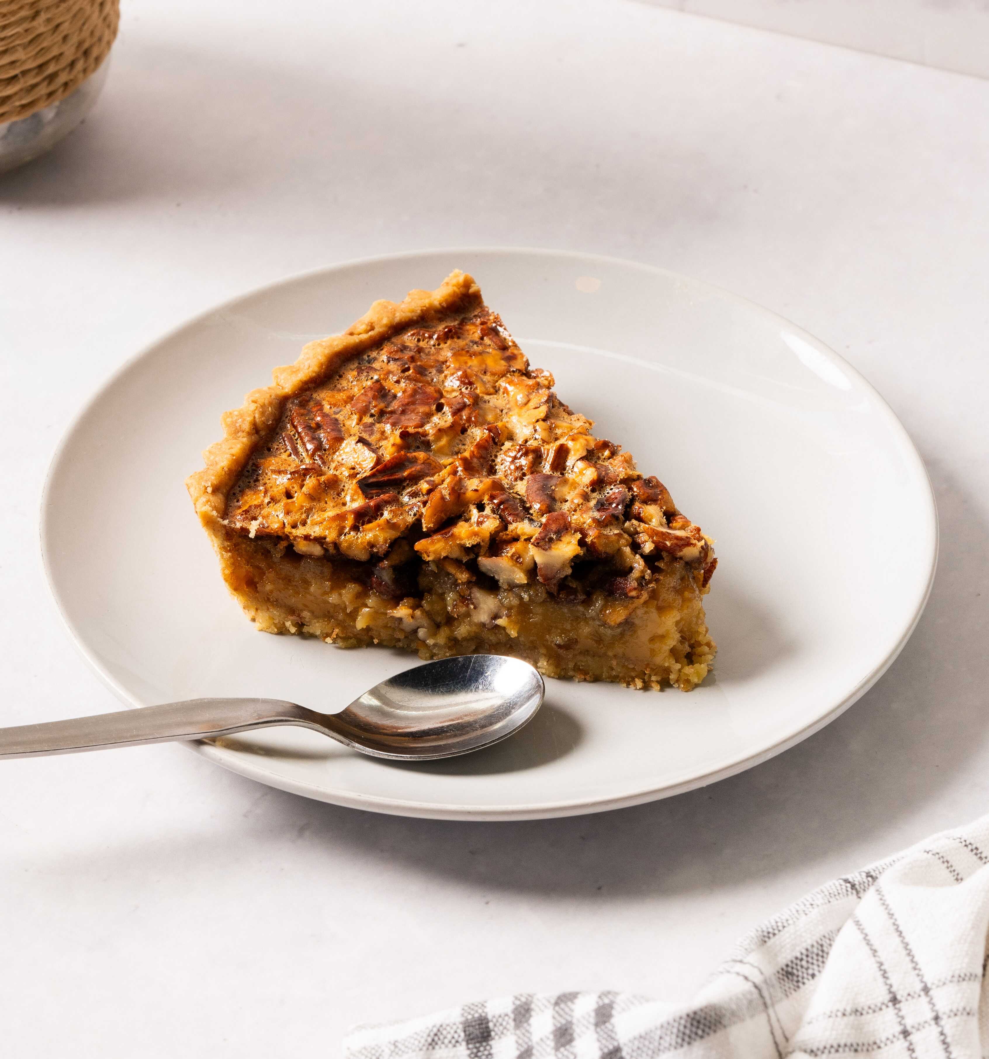 Pie de pecanas con base de harina integral, pecanas y almíbar.