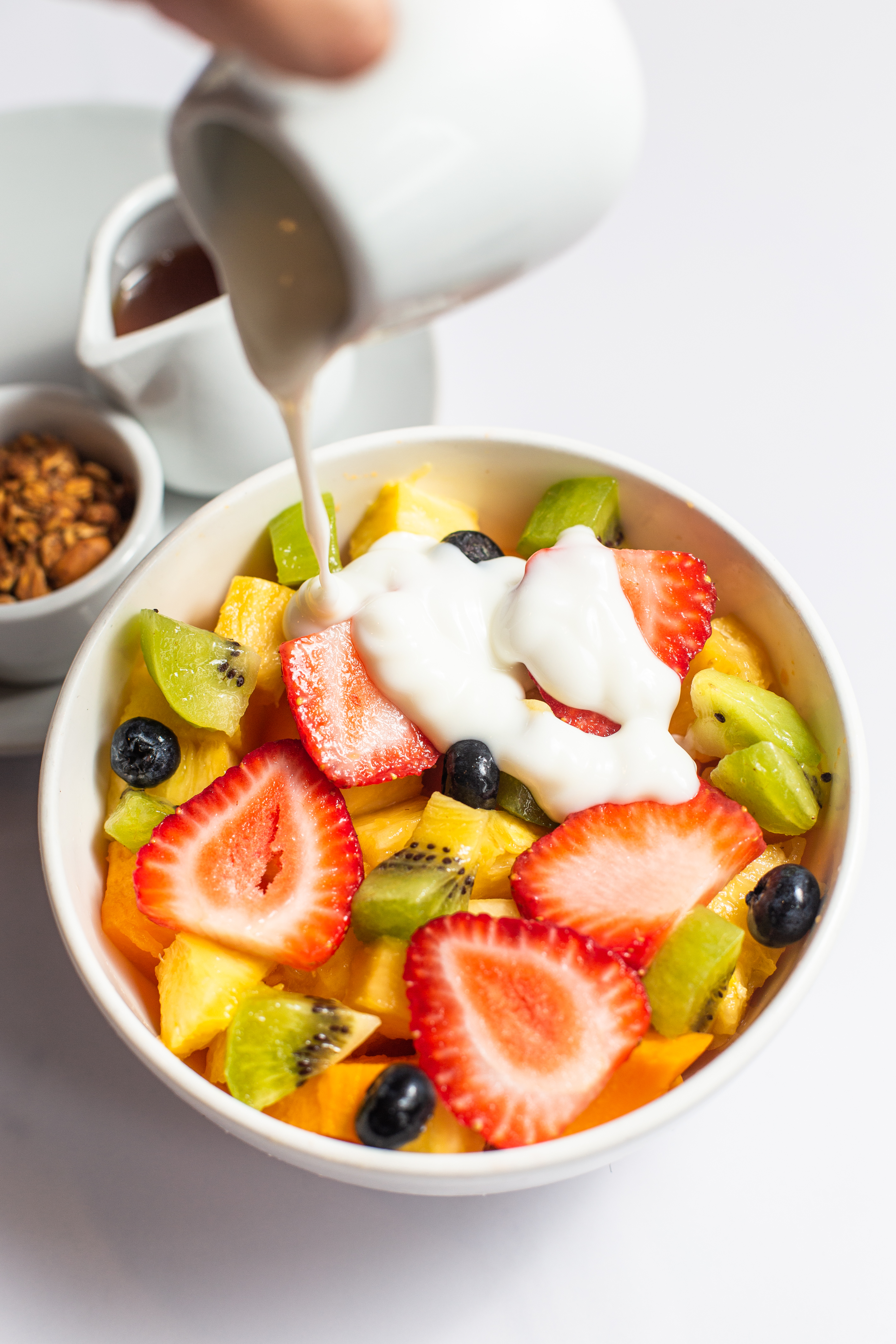 Bowl de pulpa de acaí con frutas de estación y granola.