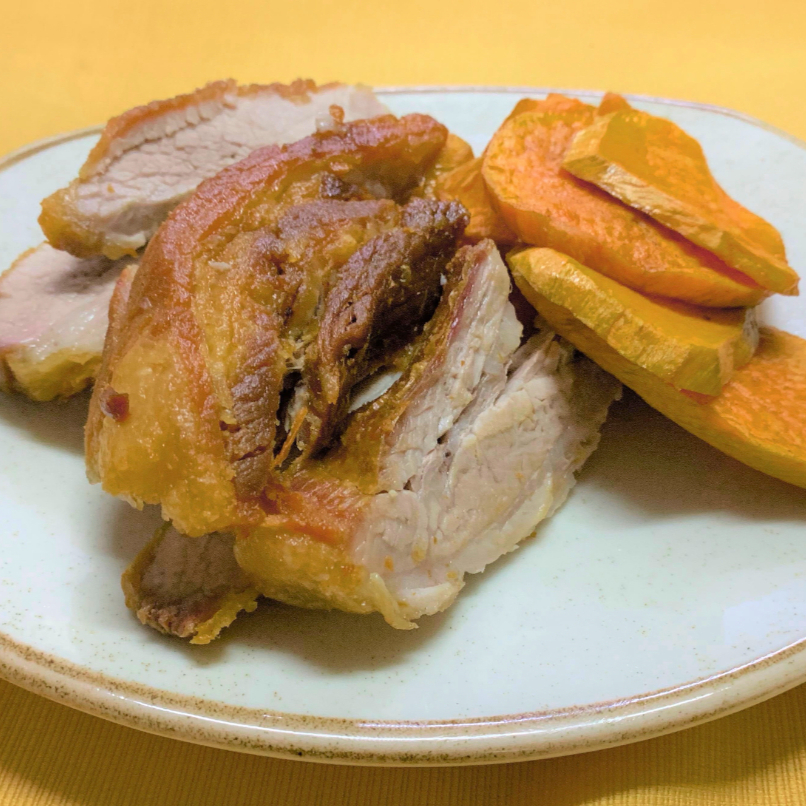 Lomo de cerdo asado al estilo oriental. Acompañado de nabo encurtido.