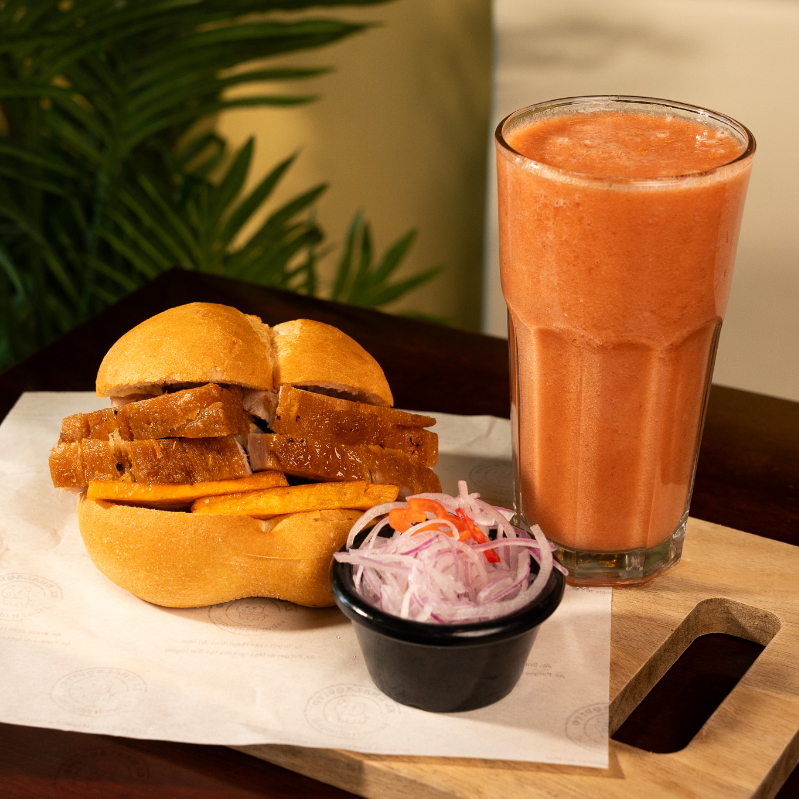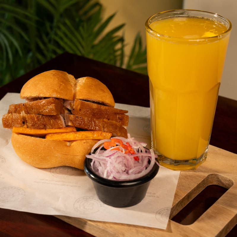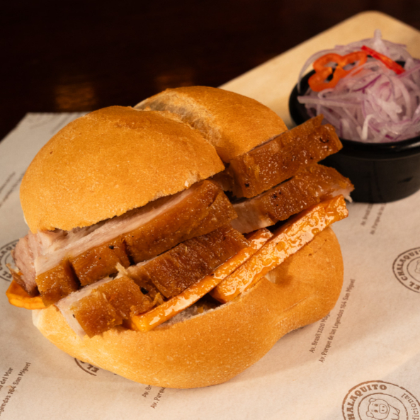 1 kilogramo de delicioso chicharrón casero, acompañado de camote frito y sarsa criolla. Un clásico!