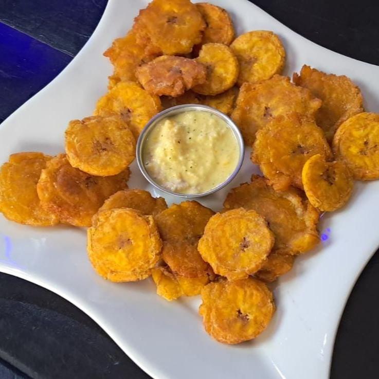 1/2 Porción de patacones crocantes, acompañados de Salsa de cocona