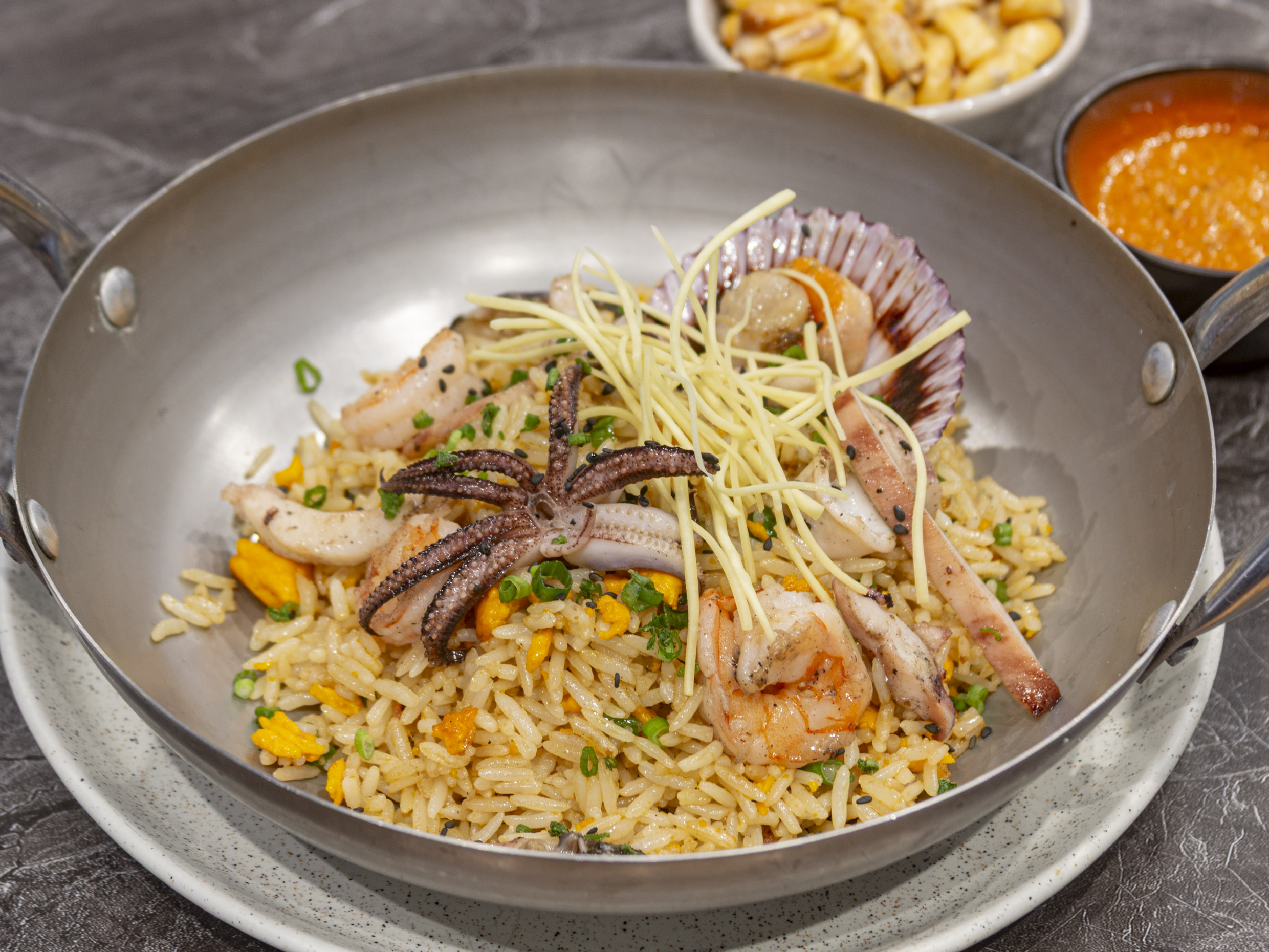 Arroz frito estilo chino con pesca del día y aromas orientales.