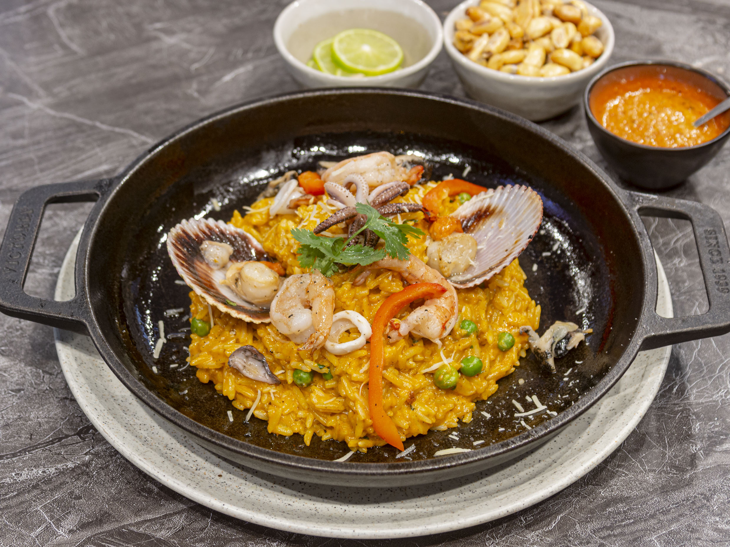 Clásico arroz con mistura de mariscos, cremoso y criollo al estilo Junco.