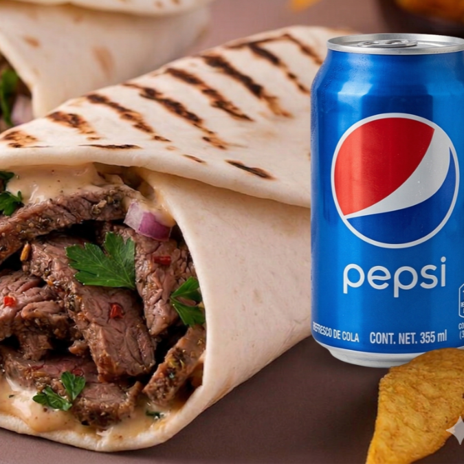 Pepsi 355 ml*1 + Shawarma de Carne*1