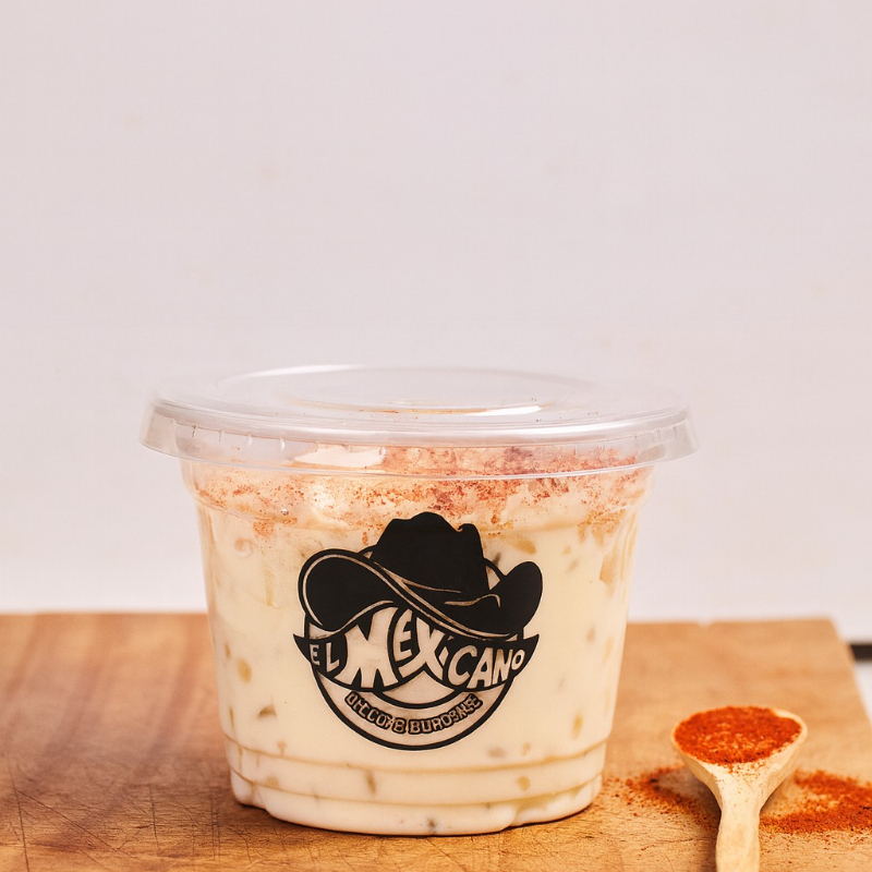 Choclo tierno mezclado con mayonesa casera de el mexicano, queso, unas gotas de limón y un toque de paprika.