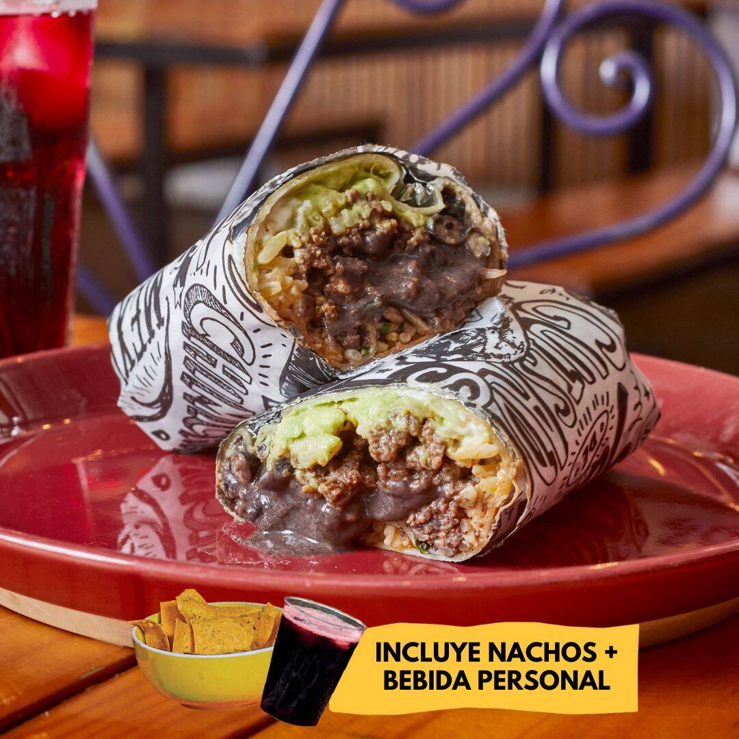 Burrito Carnalito más Nachos y Bebida