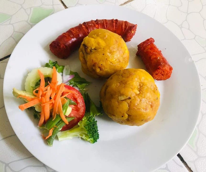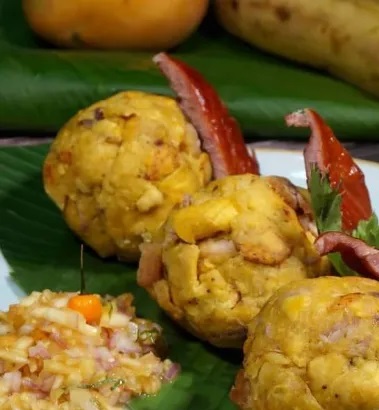 1 Bola de tacacho pintón, 1 bola de tacacho clásico, 1 bola de tacacho de plátano cocinado light.