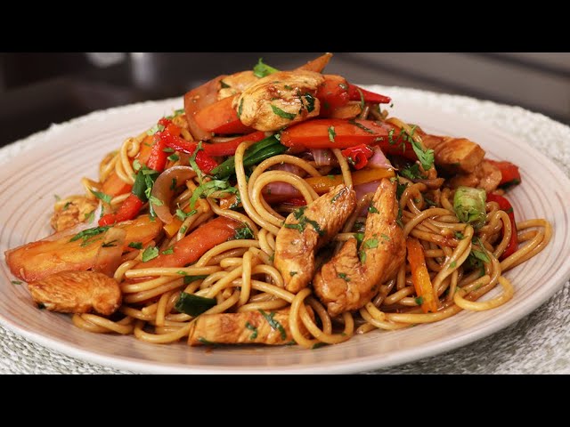 Trozos de pollo, cebolla, tomate, papas y arroz.