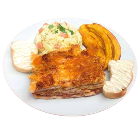 PASTICHO+ ENSALADA DE GALLINA +TOSTADA CON QUESO + TAJADAS
