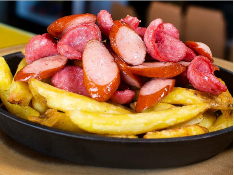 Papas fritas + chorizo en trozos + hotdog ahumado