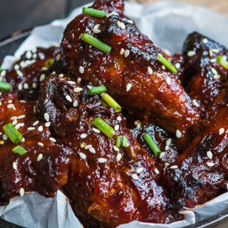 6 alitas crujiente en salsa BBQ acompañado con papa crocante