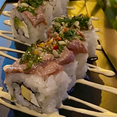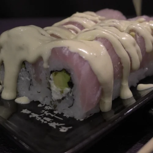 Una exquisita combinación de langostinos frescos y queso crema, untados con palta del día. se complementa con una suave y salada salsa soyu, creando una perfecta armonía de sabores.