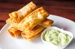 Tequeños rellenos de jamón y queso.