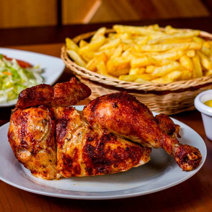 Pollo a la Brasa, Papas Fritas y Ensalada