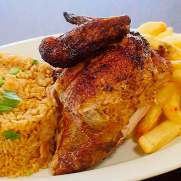 Pollo a la Brasa, Papas Fritas y Chaufa