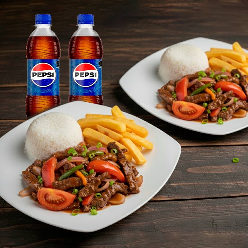 Disfruta nuestro Duo de Lomo Saltado + 2 pepsis 355ml