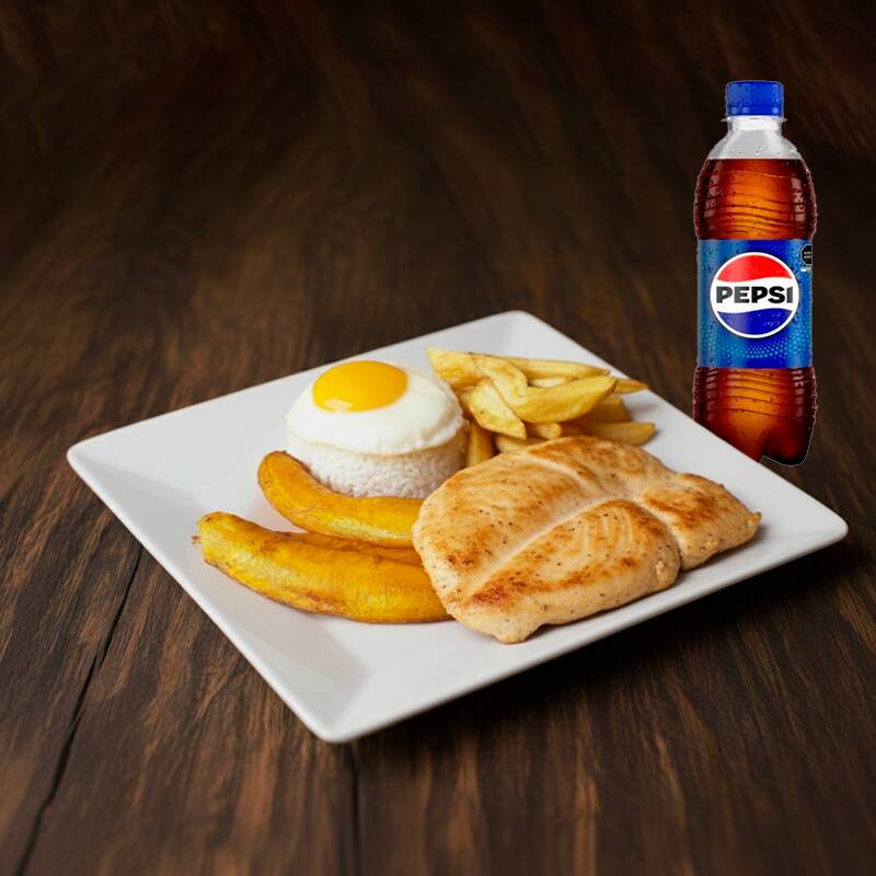 Pechuga a lo Pobre + Pepsi 355ml