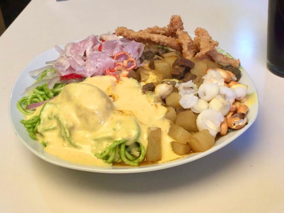 Chanfainita, papa a la huancaína y ceviche.
