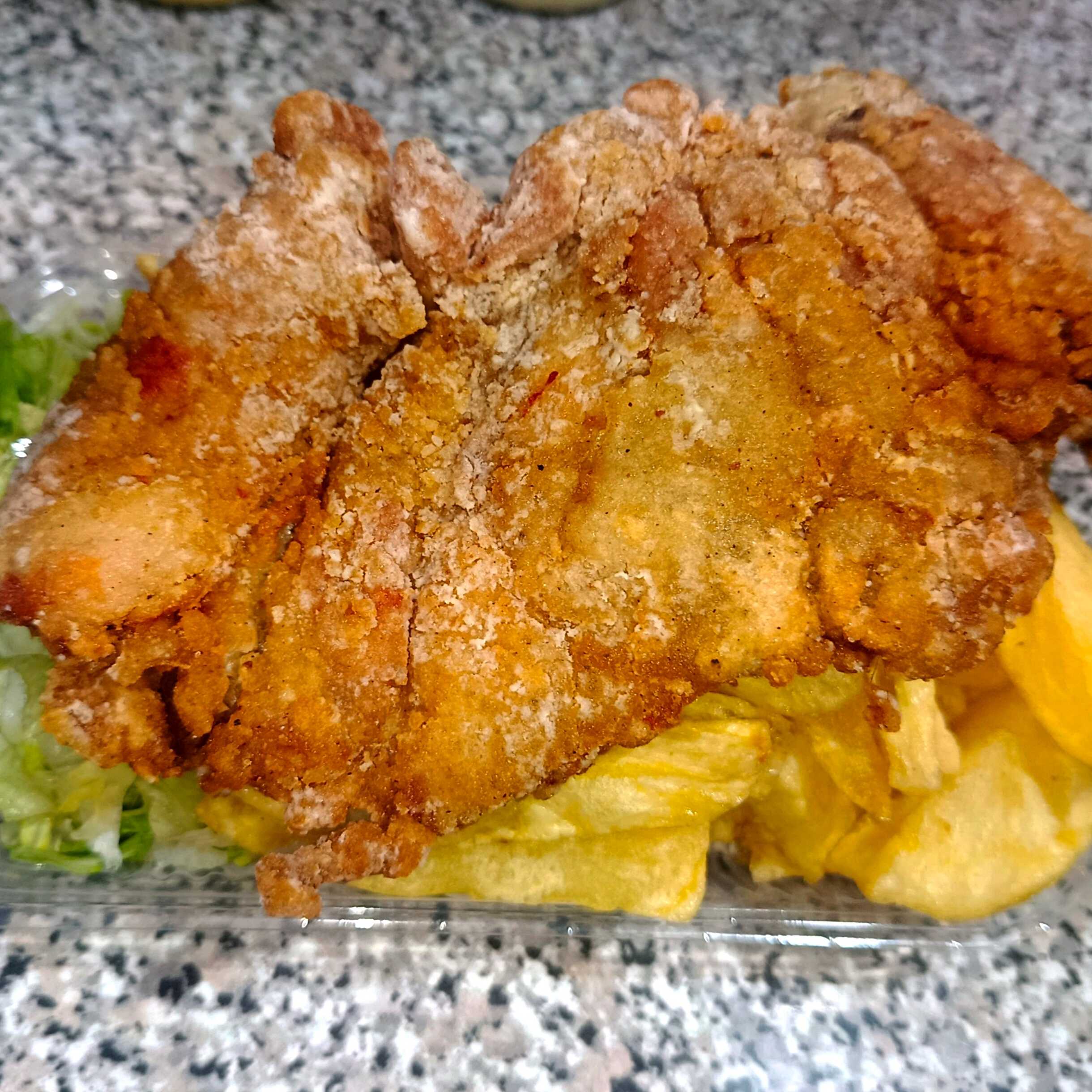 Pan fresco, carne o pollo, papa, ensalada, huevo, queso, jamón