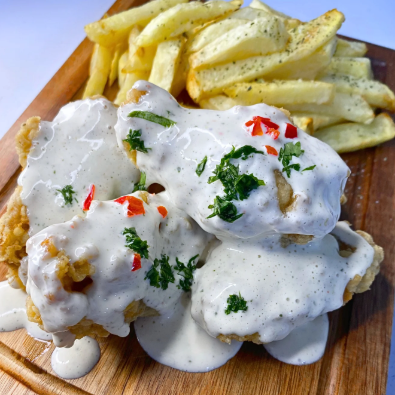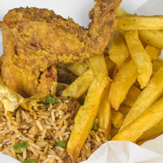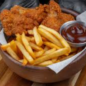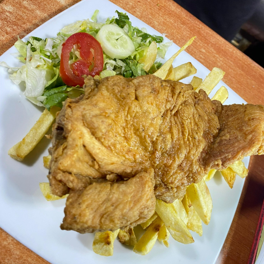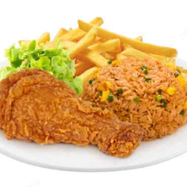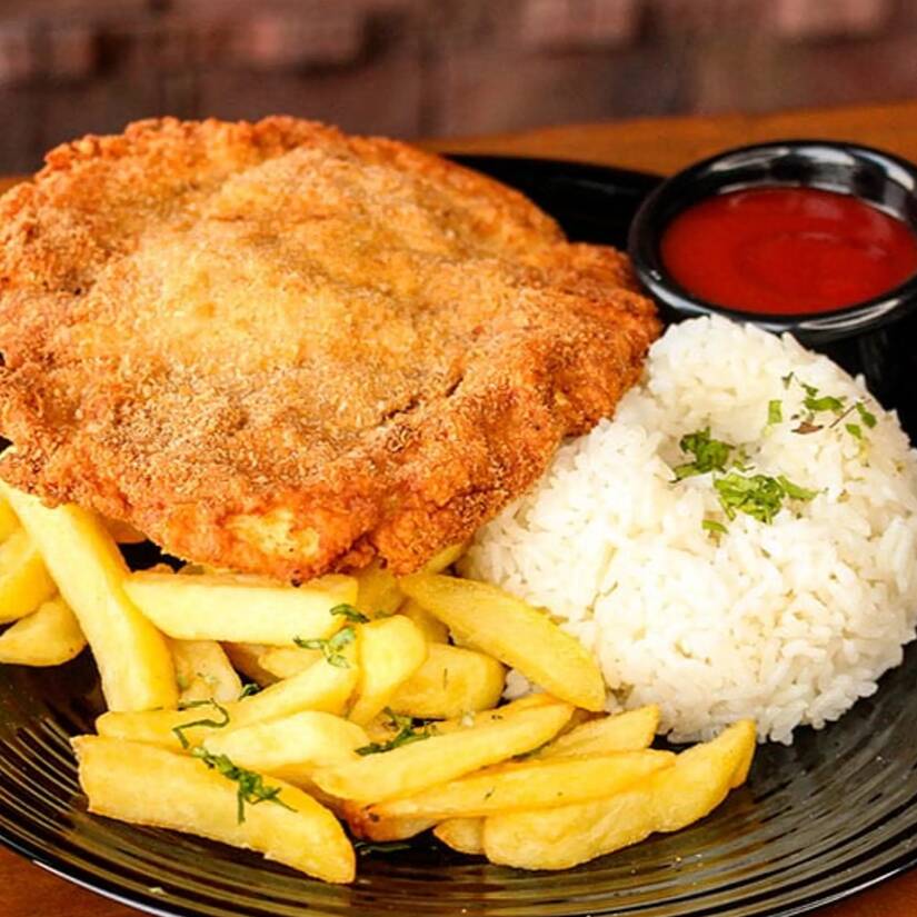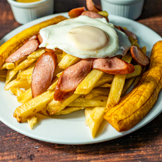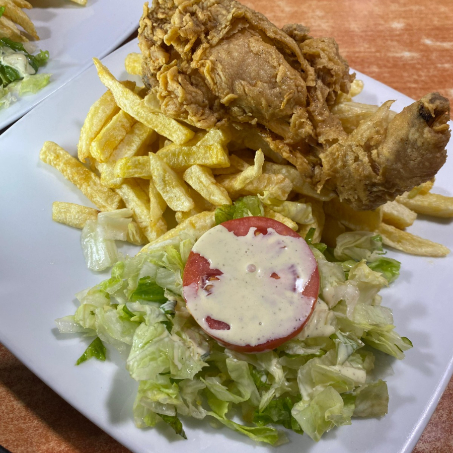 CON PAPAS FRITAS Y ENSALADA + CHAUFA