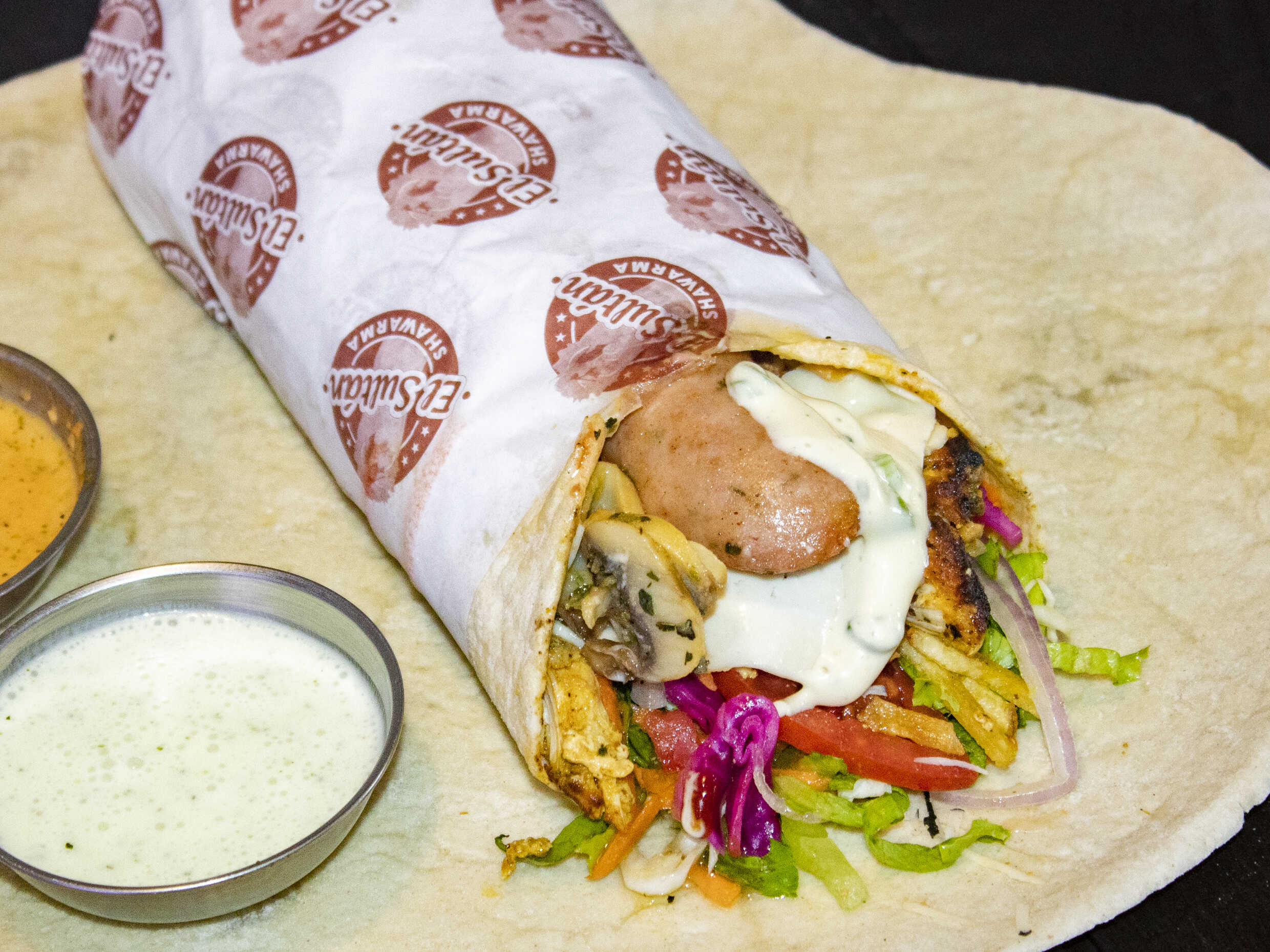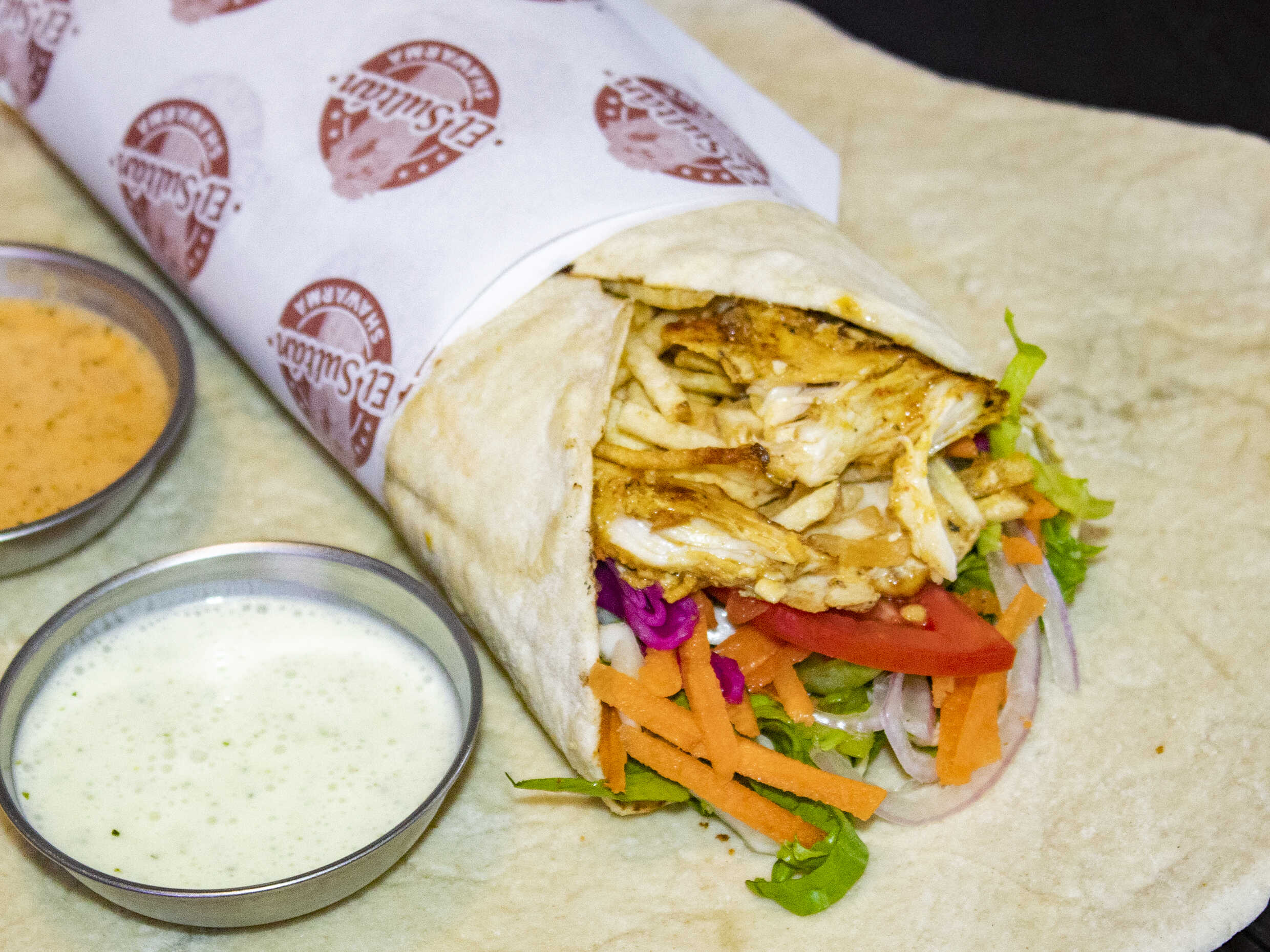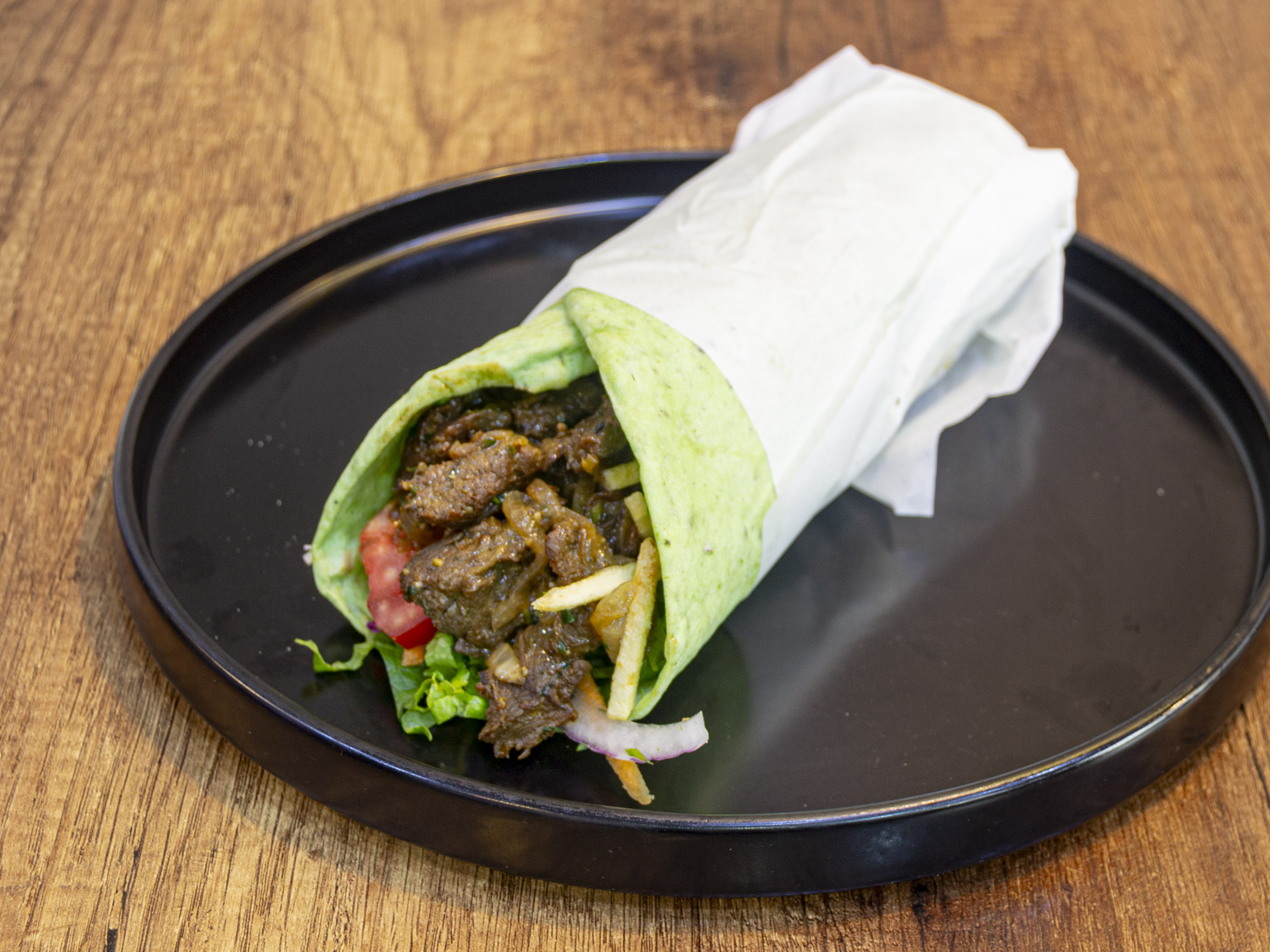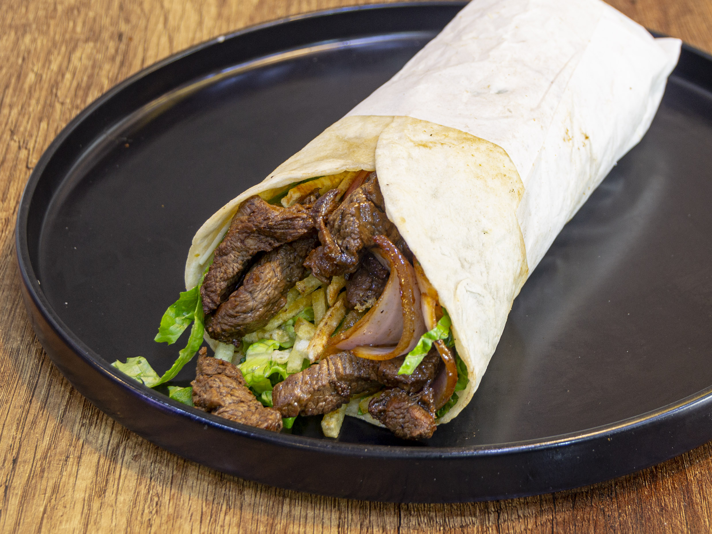 Pollo, kebab burguer, falafel, salsa de pimentón caramelizado, queso, papas al hilo y complementos
