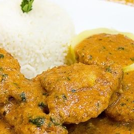 Pollo al Maní con Papas Sancochadas