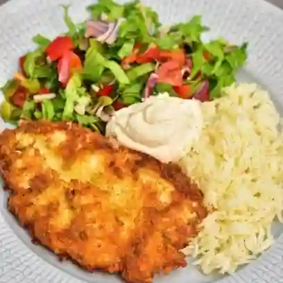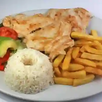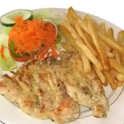 Filete de pollo a la plancha y papa a elegir, opción a agregar entrada y gaseosa.