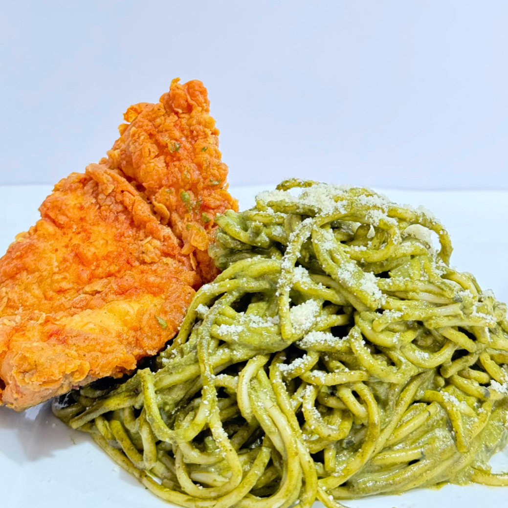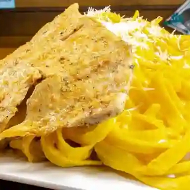 Tallarín a la huancaína, proteína a elegir, opción a agregar entrada y gaseosa.