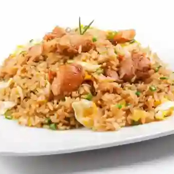 Arroz chaufa de pollo flameado, ahumado, opción a agregar entrada y gaseosa.