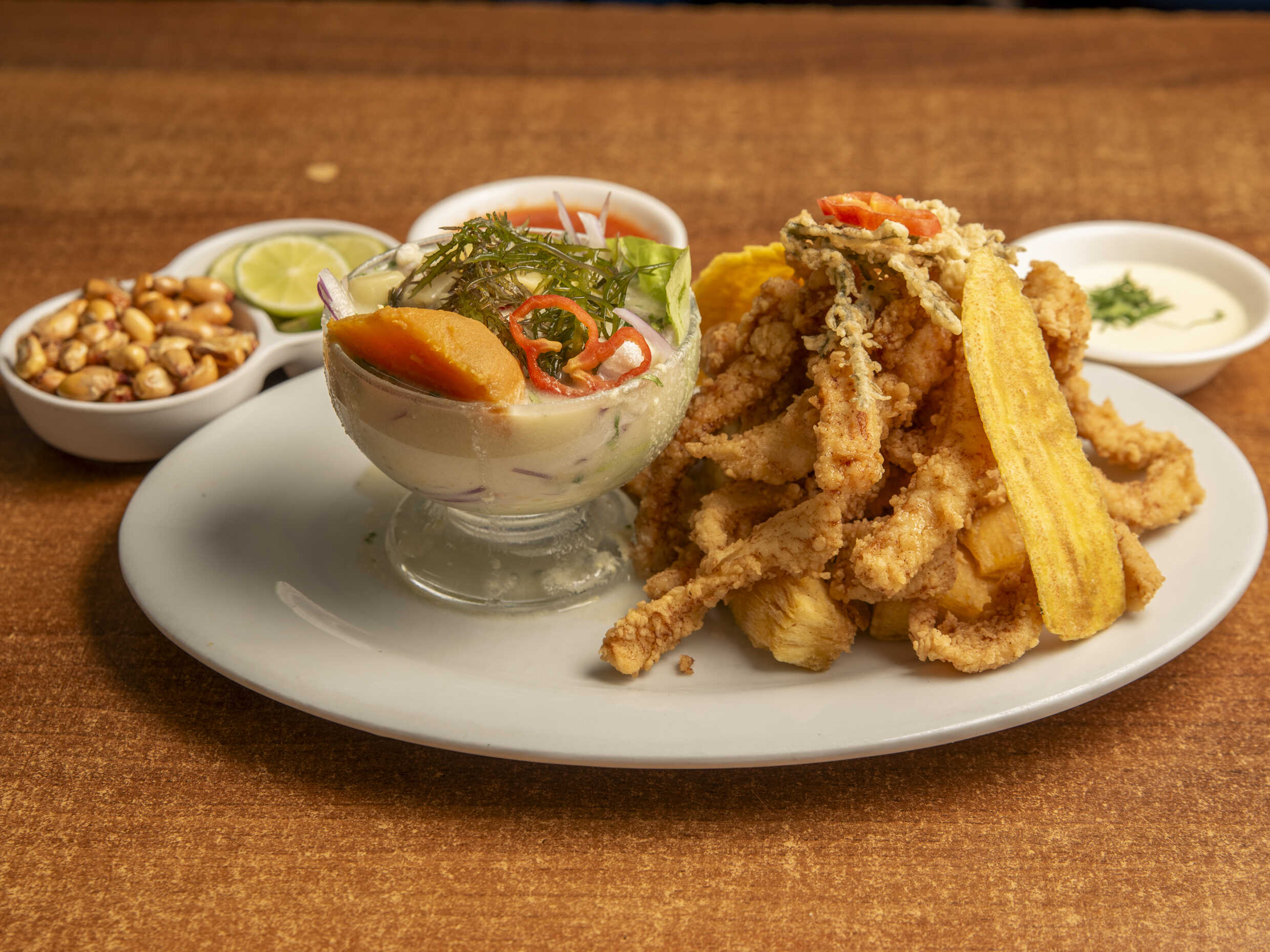 Tiradito+ Ceviche+Chicharron de Pescado+Gaseosa