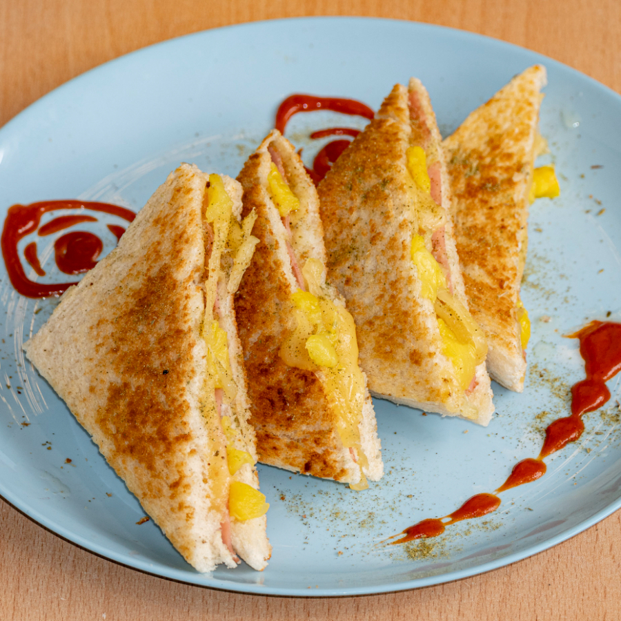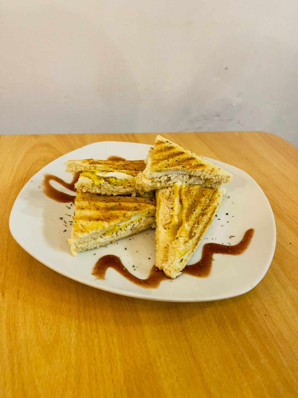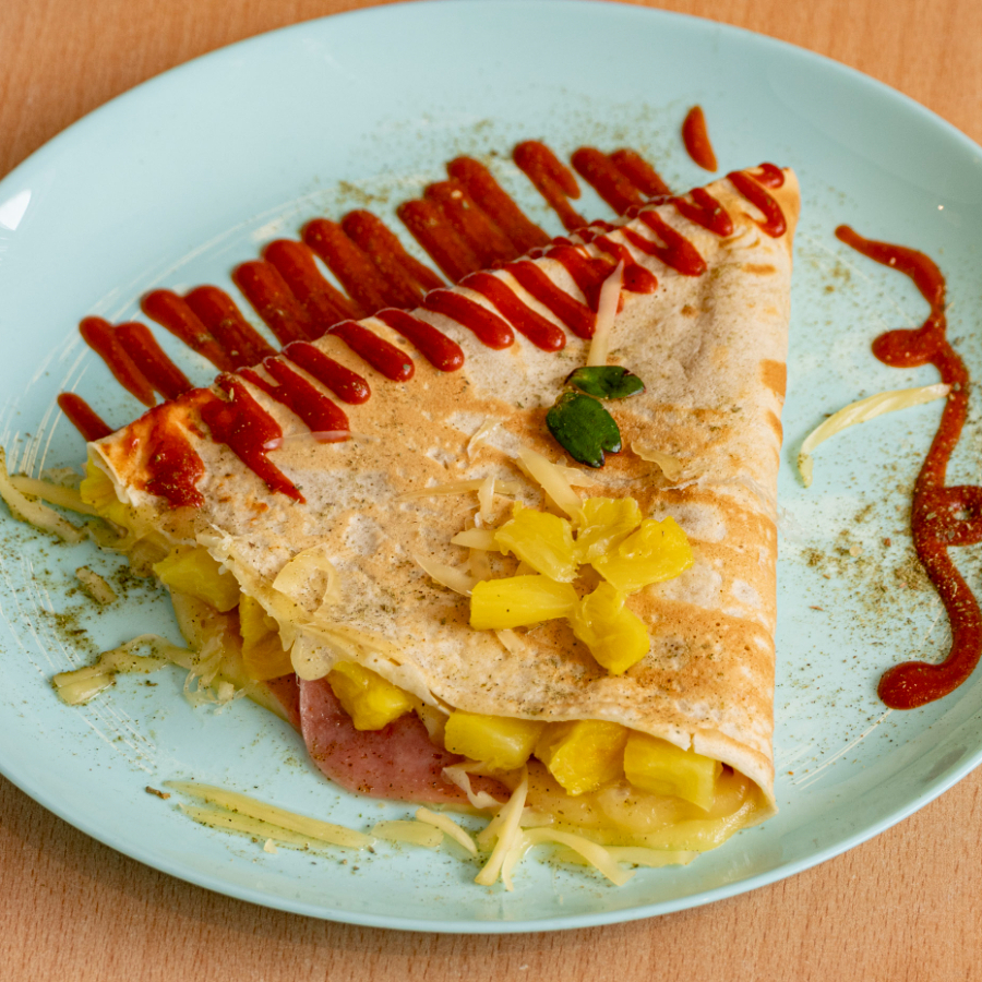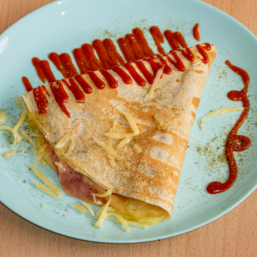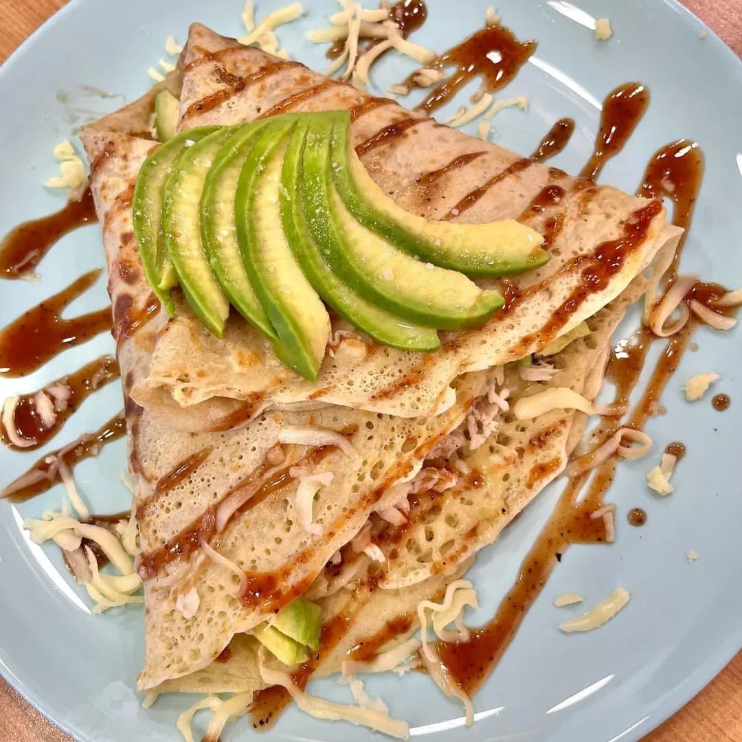 Queso, pollo, huevo, orégano y salsa BBQ.