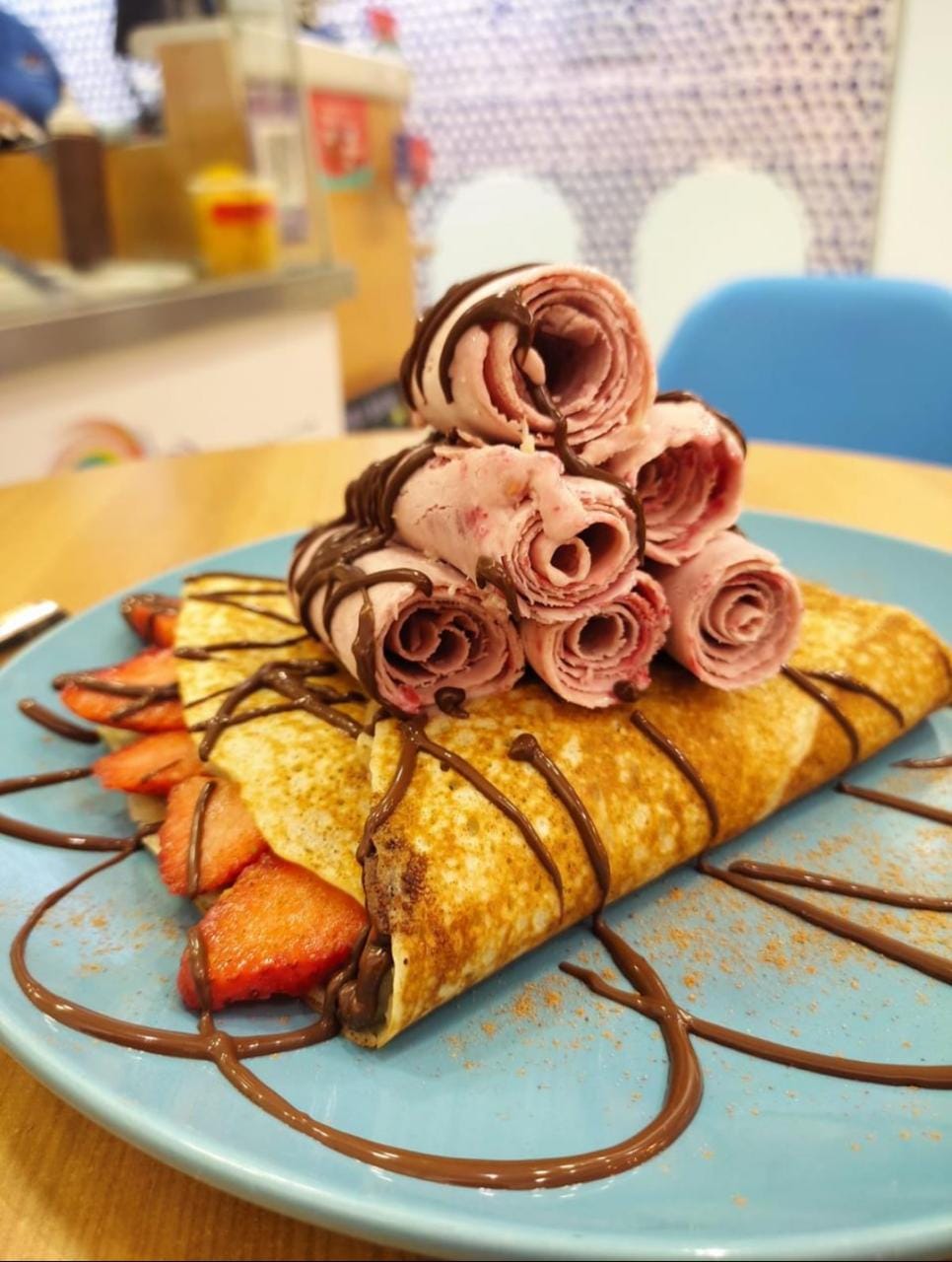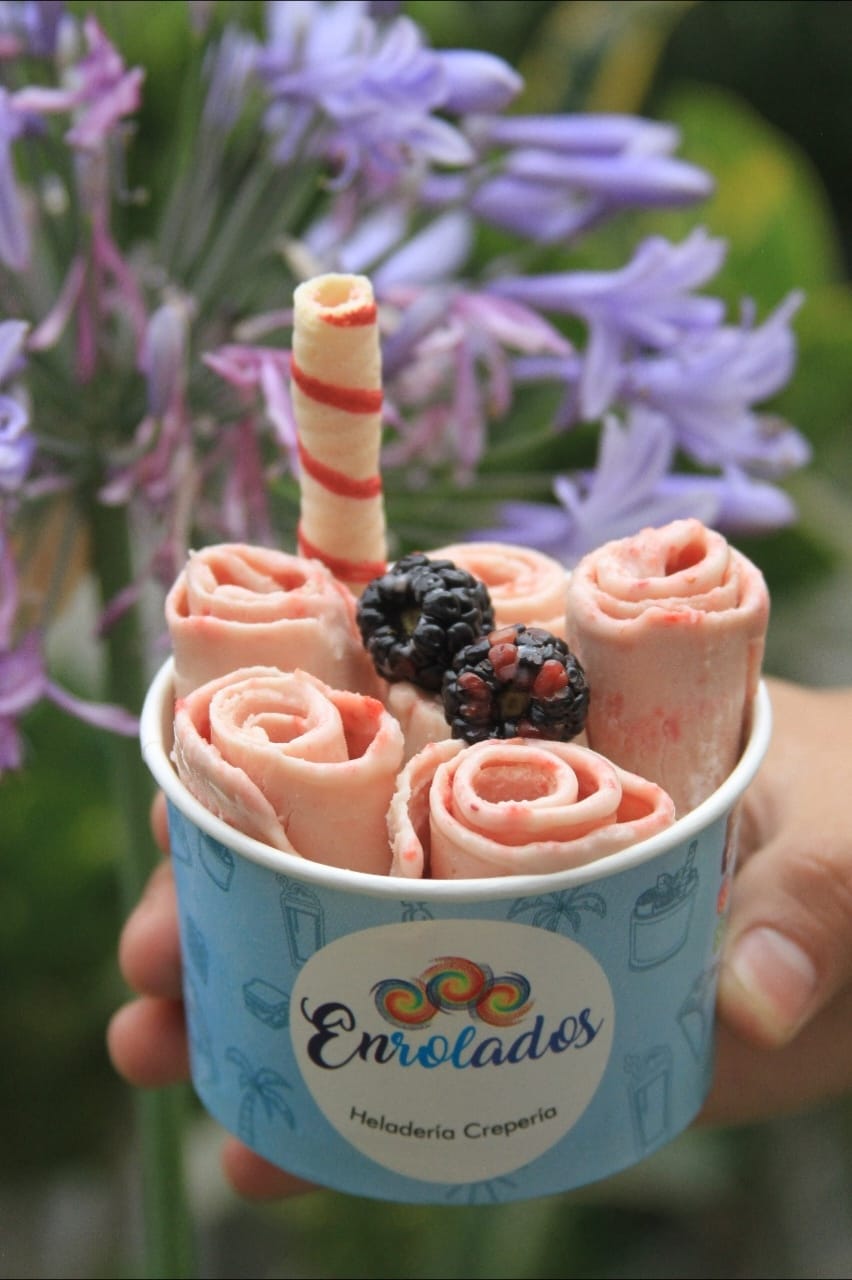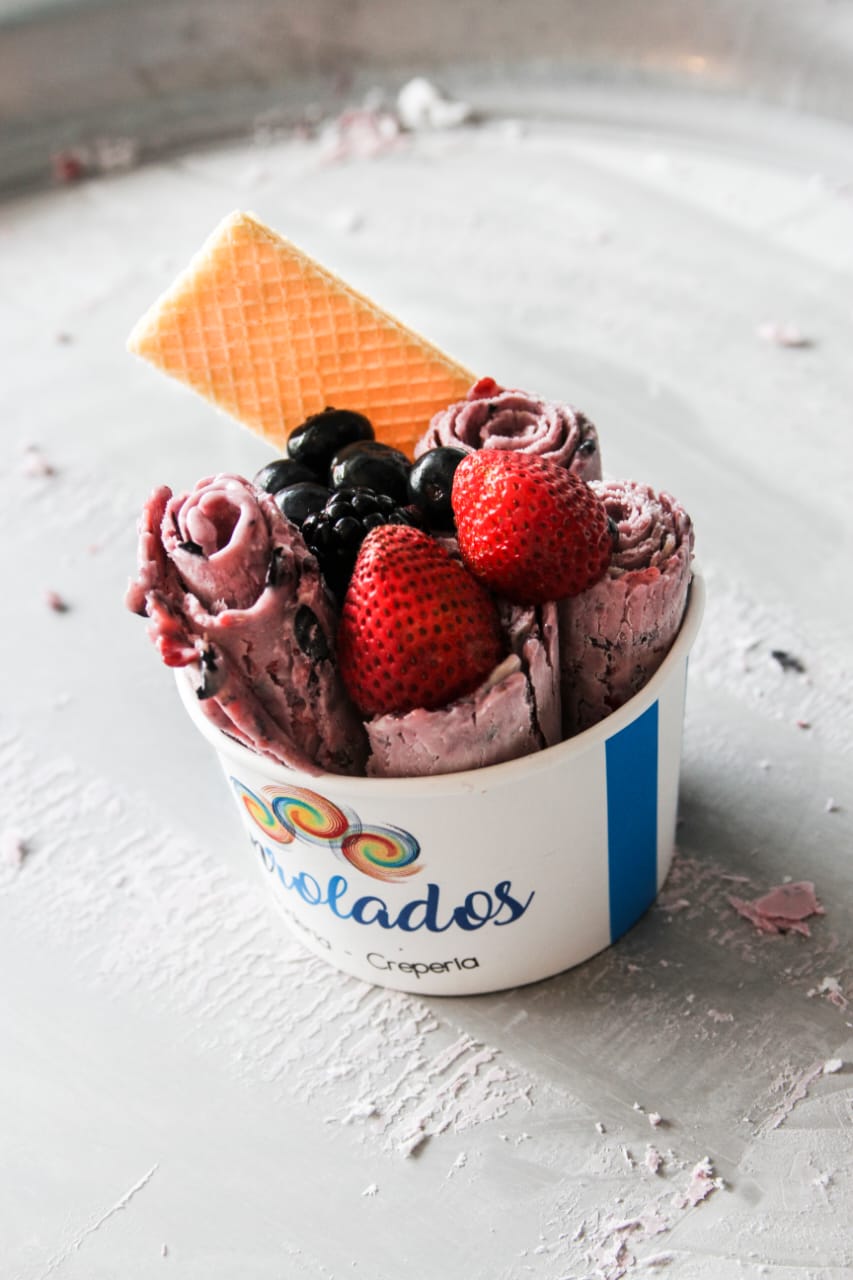Helado de 2 sabores, 1 fruta, 2 toppings y 2 jaleas.