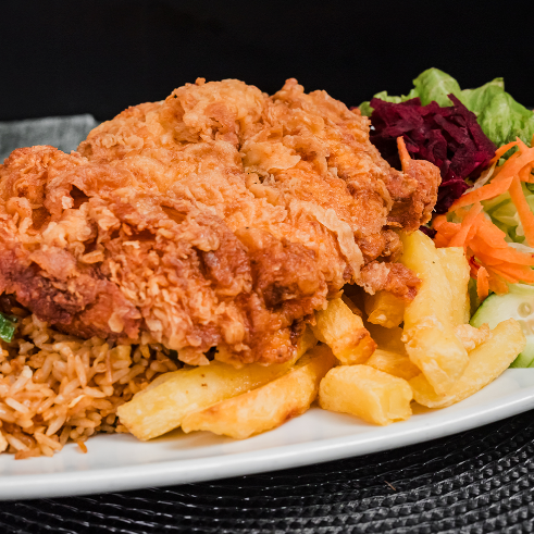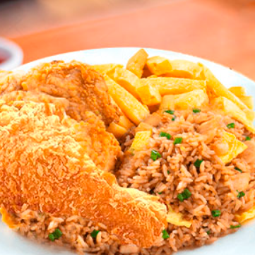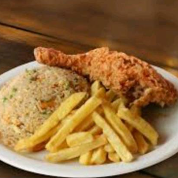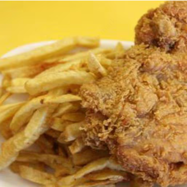Un cuarto de Pollo a la brasa, papas fritas, gaseosa 355 ml.