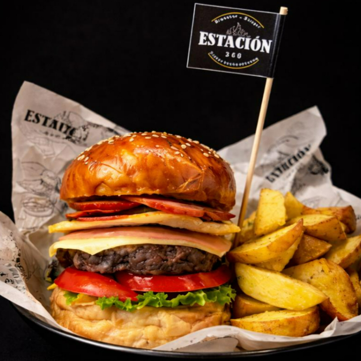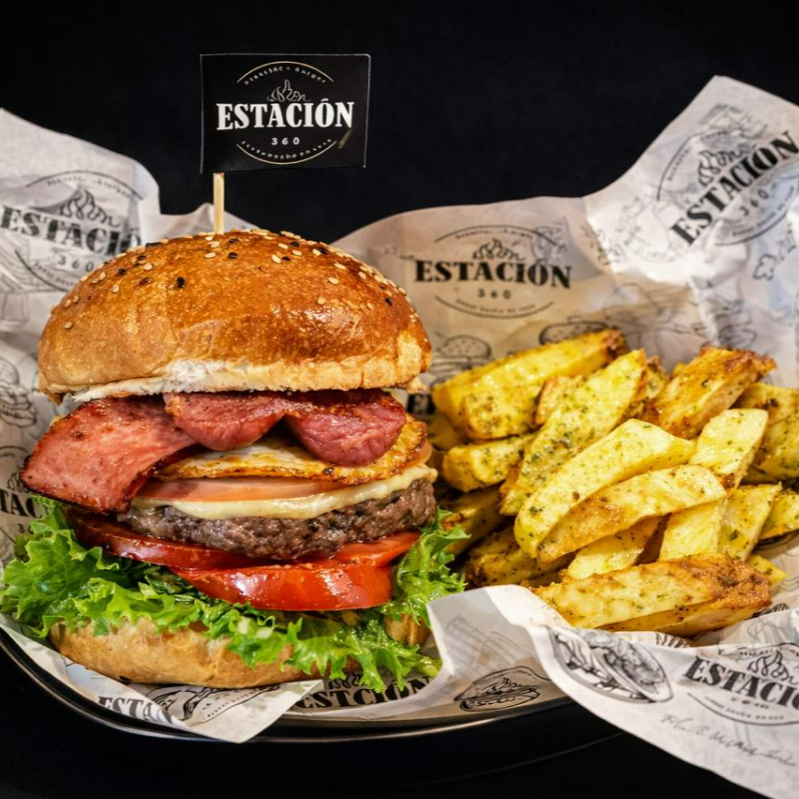 140 g De carne, queso, jamón, tocino, huevo, tomate, lechuga orgánica, acompañado de papas nativas.