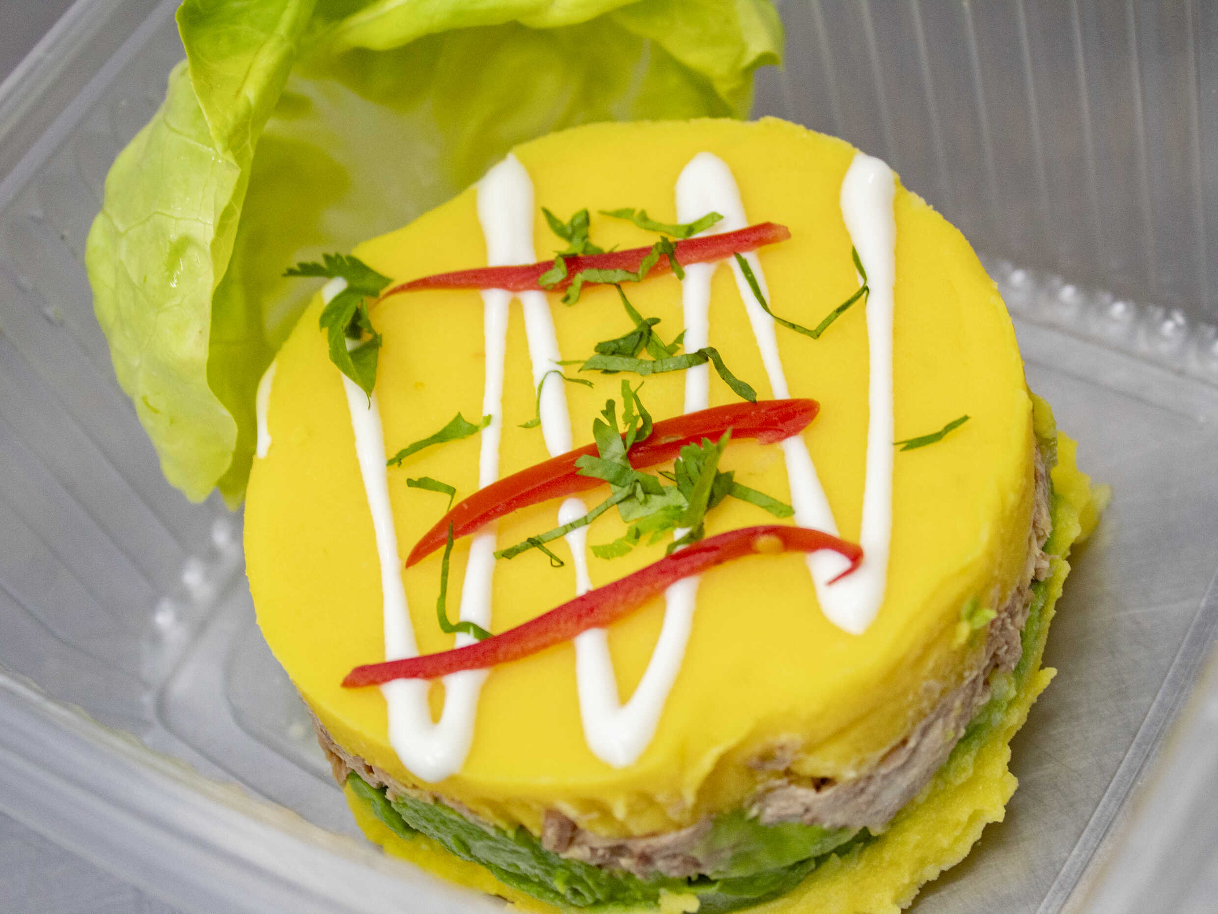 El clásico plato a base de masa, palta, relleno de atún mayonesa, lechuga, tomate y chifles.