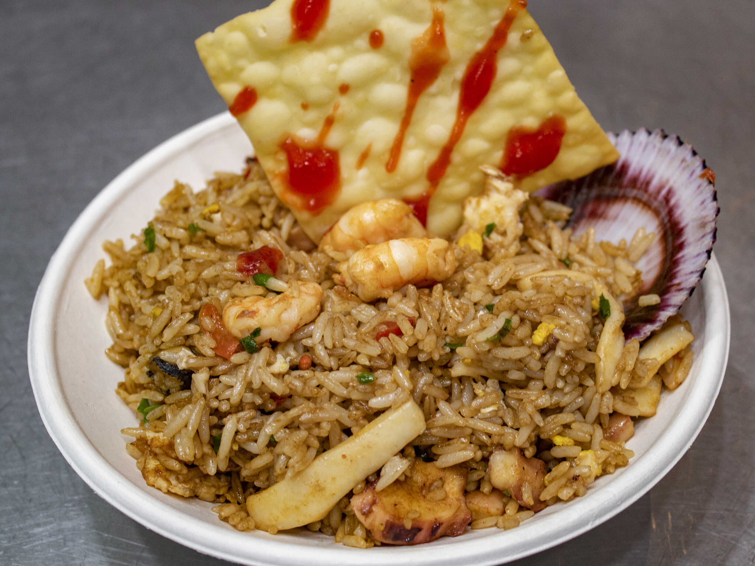 Preparado con variedad de marisco, arroz, pimiento, huevo, ajonjolí, sillao, kion, wantan frito y tamarindo.