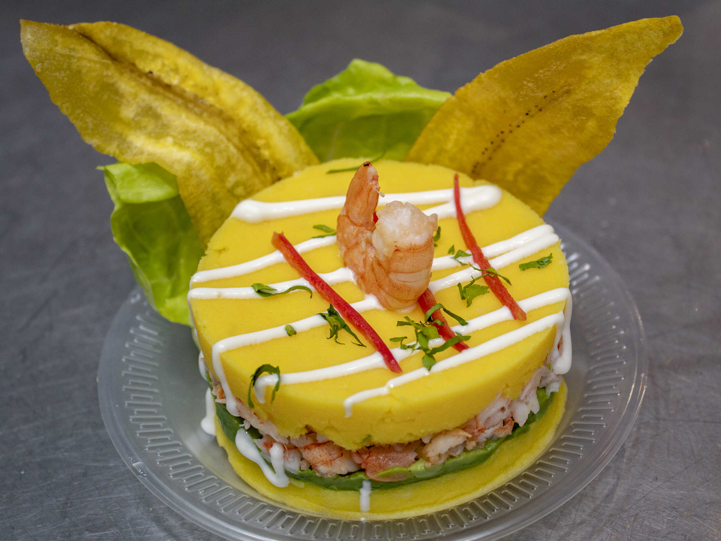 El clásico plato a base de masa, palta, relleno de langostino, mayonesa, lechuga, tomate y chifles
