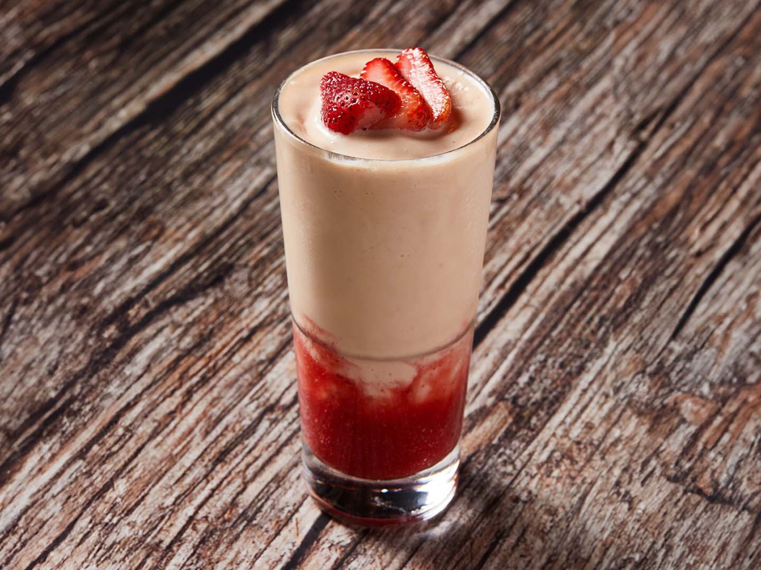 Milkshake 16 oz, helado de vainilla y puré de fresa.