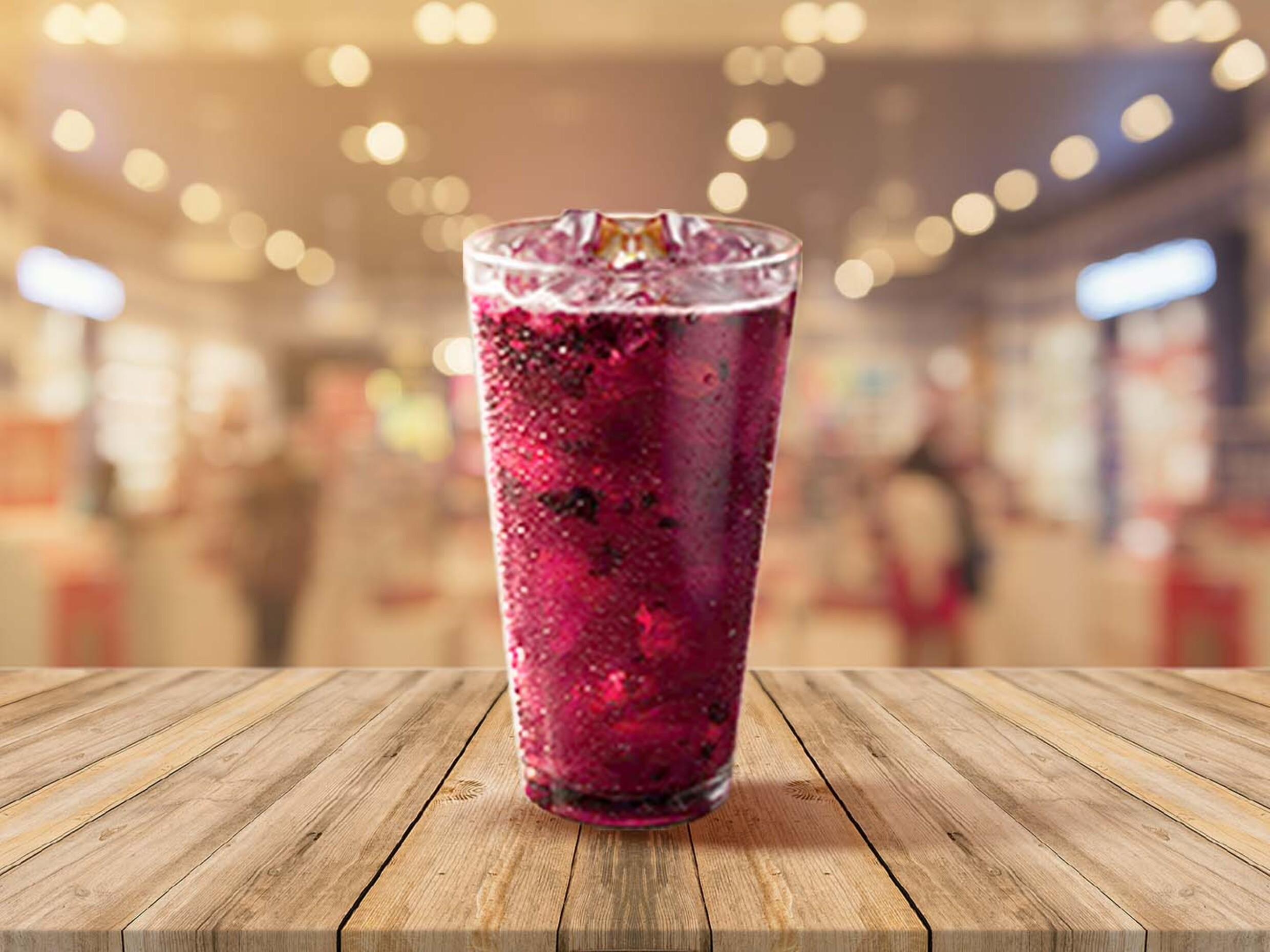 Ron blanco, moras, puré de guayaba, jugo de lima limón, menta fresa y soda. Soda servida sin hielo.